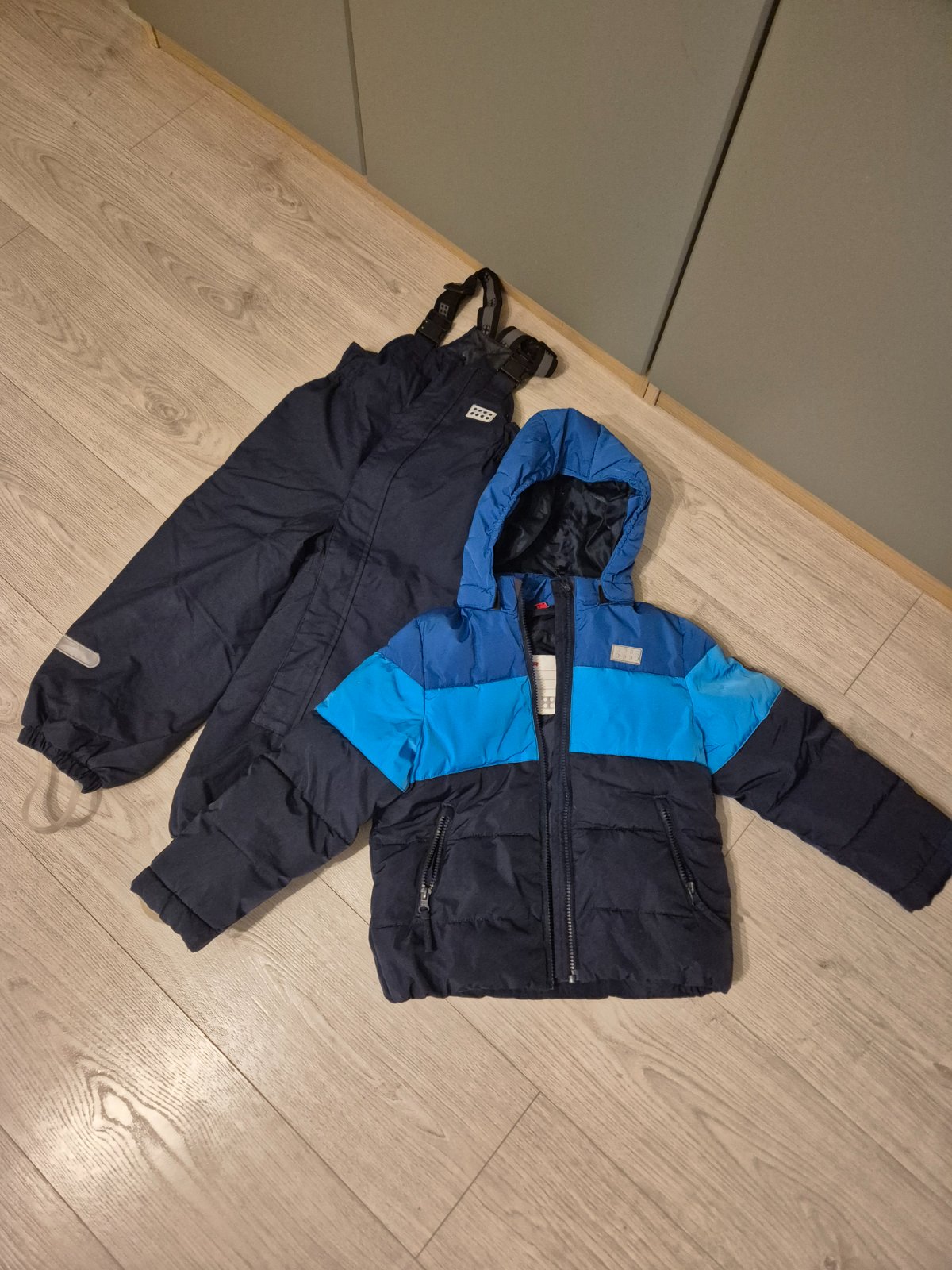 Zimný komplet zn. Lego wear: bunda a otepľovačky, veľkosť 110 (4-5 rokov). Dobrý nosený stav, bez poškodenia.