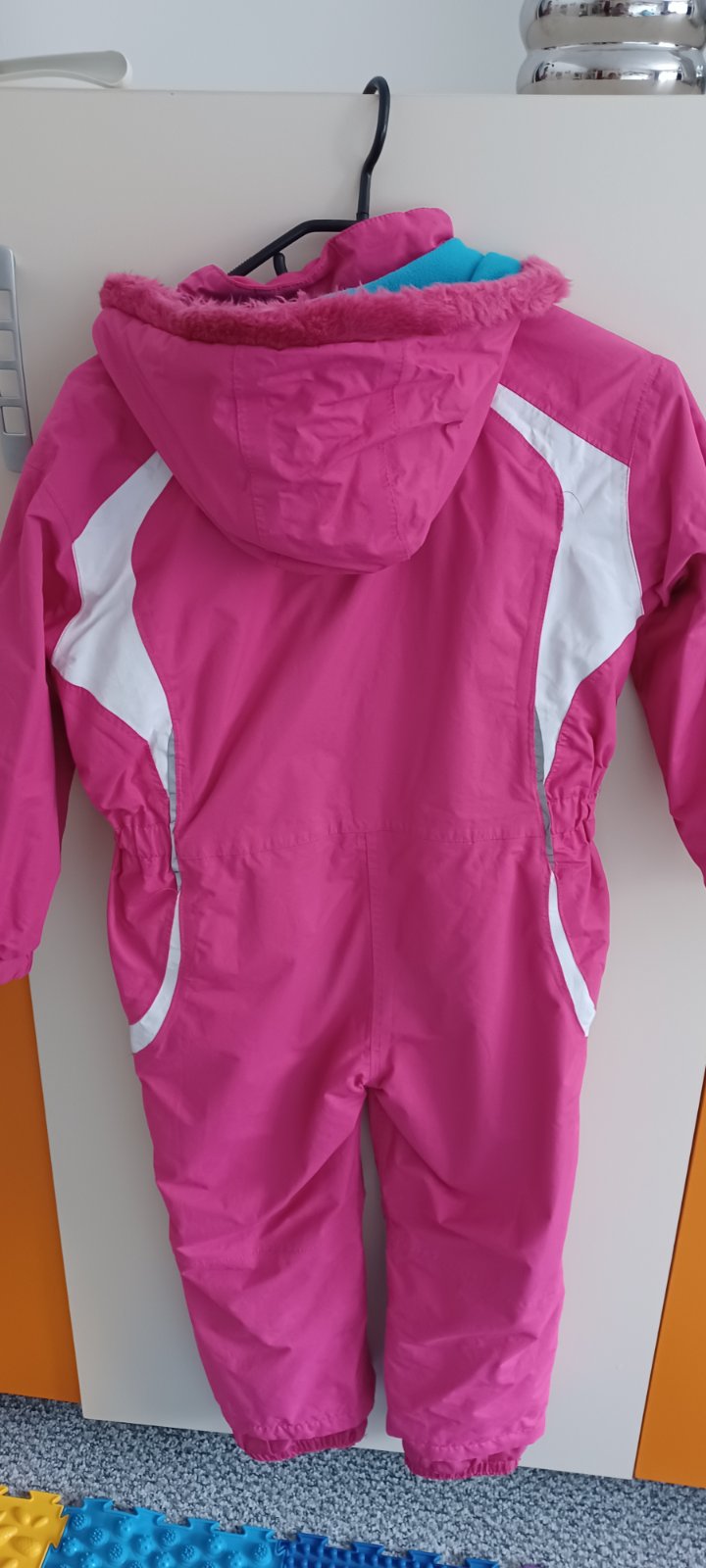 Zimný overal v dobrom nosenom stave, veľkosť 5-6rokov. Na zadku trochu vyšúchané, viď foto a 1 gumička praskla, kapucňu nemám. Značka PAX. Zapínanie na zips aj na suchý zips. Má aj náhradné gombíky.V