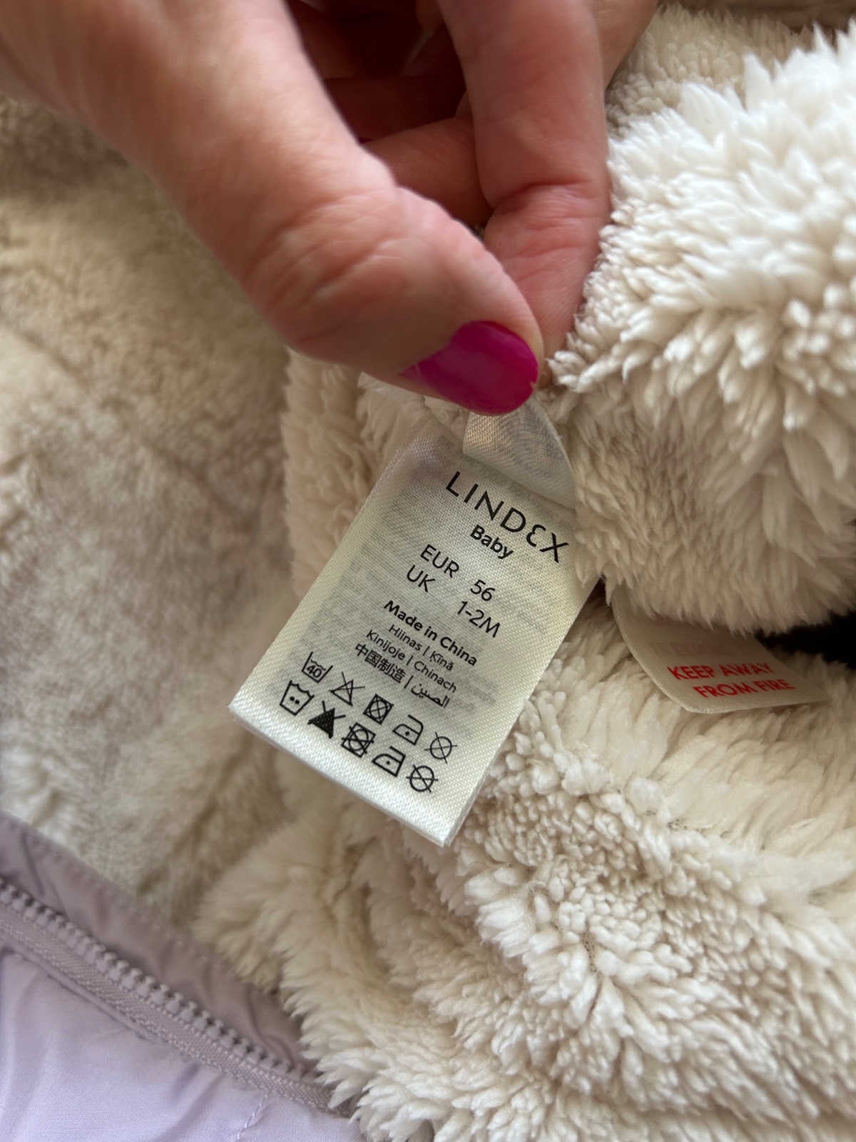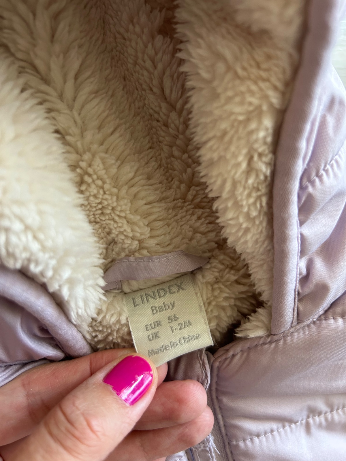 Krásna mäkučká teplá kombinéza, veľkosť 56, ale ako je zvykom u Lindex dá sa nosiť dlhšie, farba light lilac (najlepšie asi vidieť na poslednej fotke, je tak jemnučko svetlo fialová), pôvodná cena 49,99 eur. Kapucňa je napevno, rúčky aj nožičky sa dajú zakryť ako je na fotkách. Hrejivé kožušinkové vnútro. U nás sa nestihla kombinéza vôbec využiť a bola použitá len raz na odchod z pôrodnice, takže je ako nová. Snáď sa ešte poriadne využije :) možný aj osobný odber v BA