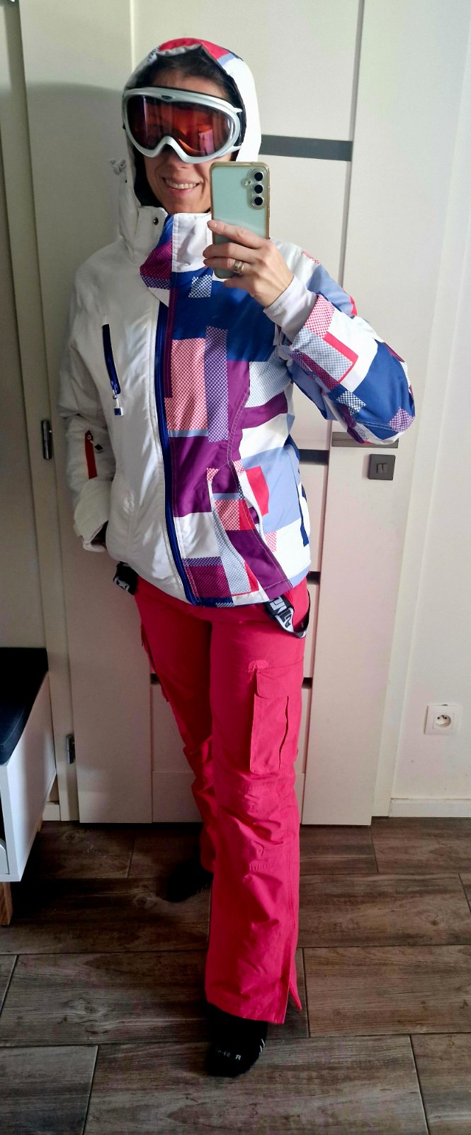 Bunda ma len jemne opotrebenie vnutornych elastickych patentov s prevlecenim cez palec,nic bezne sviditelne,inak je v top stave,nohavice rovnako top stav,cena spolu LEN 70eur je fixna,dakujem,velmi odporucam,vhodne pre dievca aj zenu. Cena je fixna. Nazivo este krajsia....