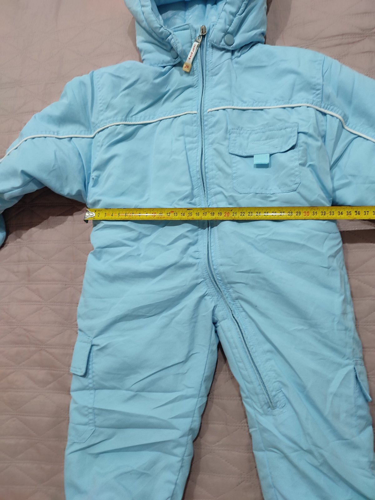 vo velmi dobrom stave, zapinanie na zips a suchy zips, celkova dlzka od goliera je 71cm, v pase je gumka a aj opasok, pas merany v klude 26,5cmx 2, vnutorna dlzka nohavic 28cm, dlzka rukava merana ...
