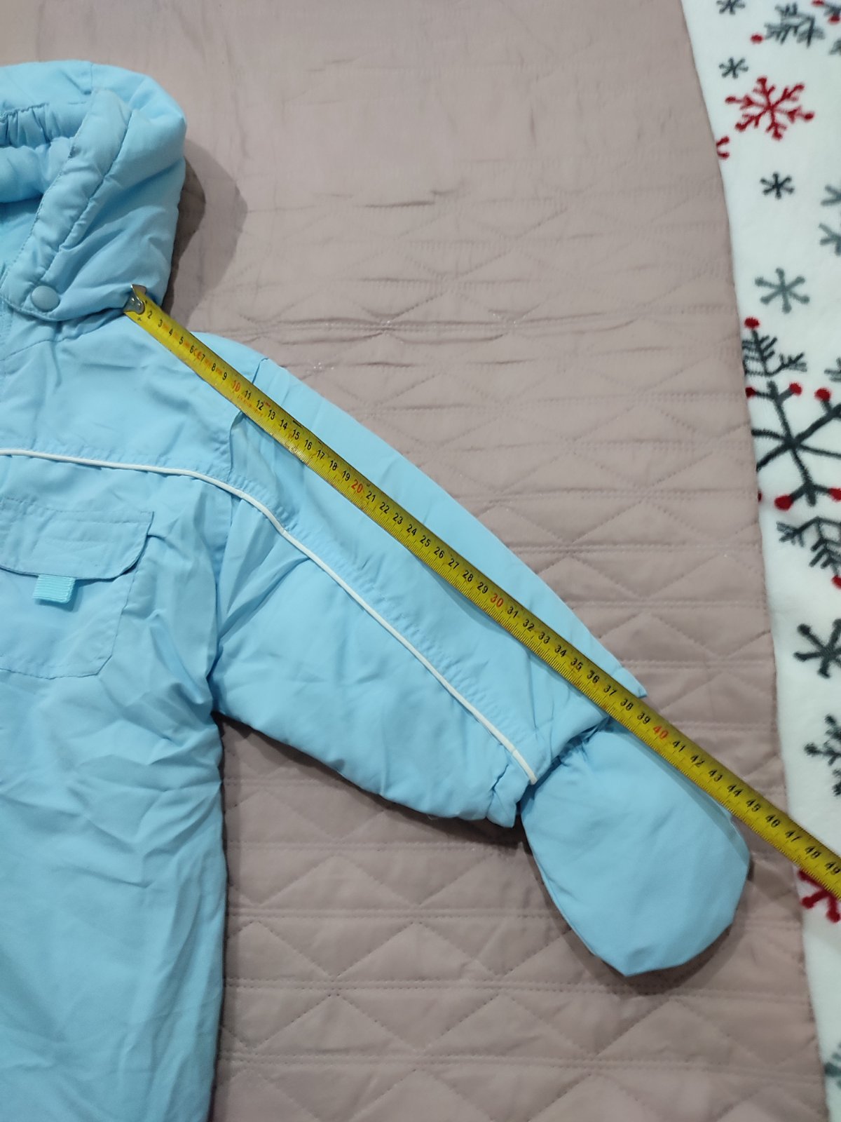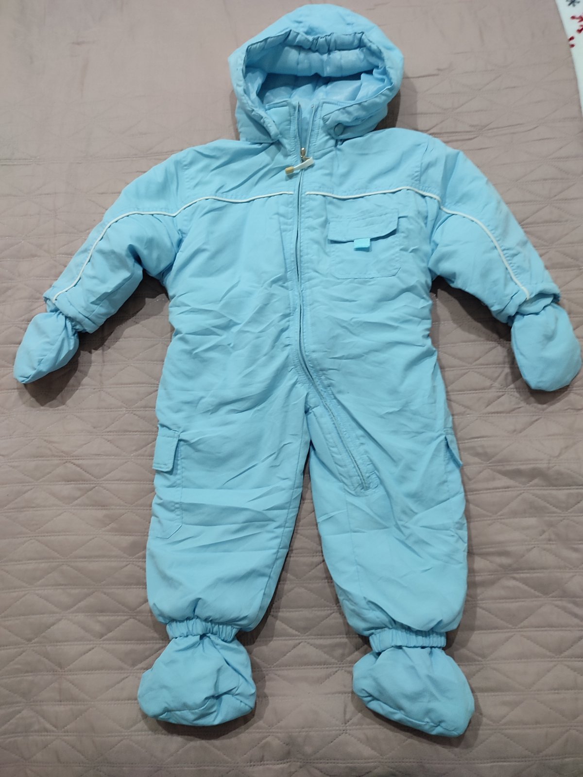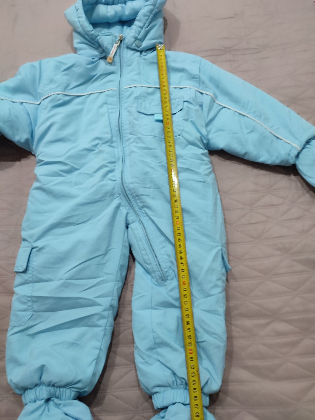 Zateplený overal na zimu.Vnútro flisova látka.Bohužiaľ nemám k nemu rukavičky(takto som ju kúpila tiež)