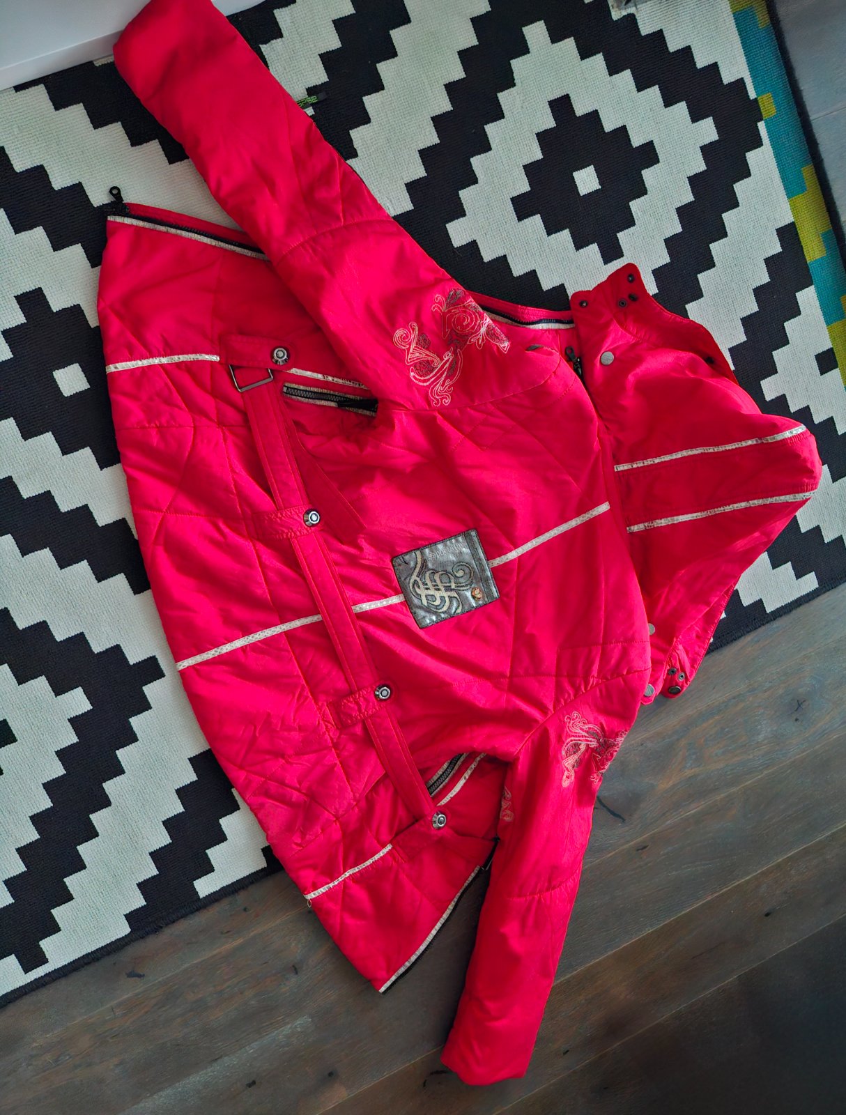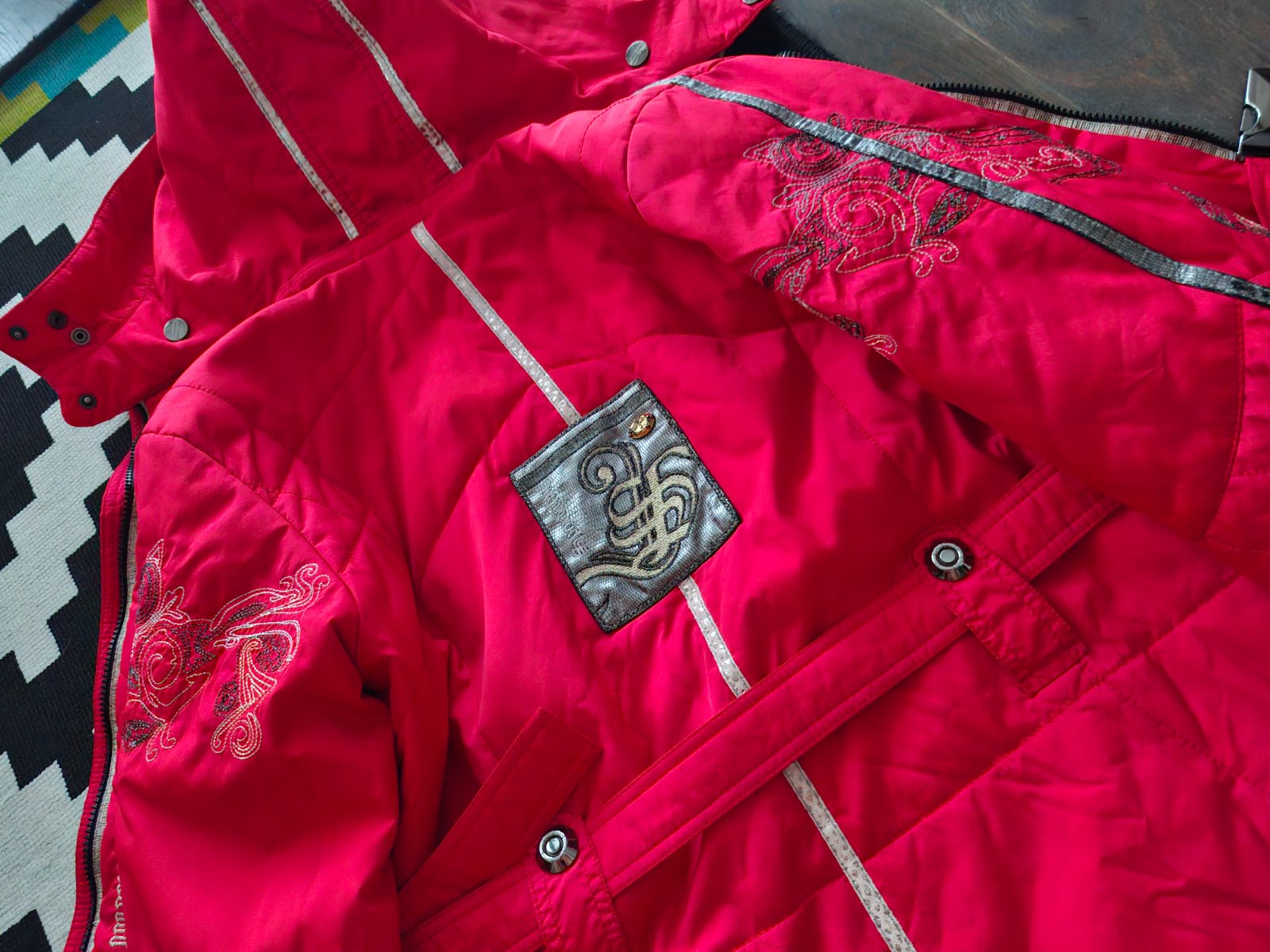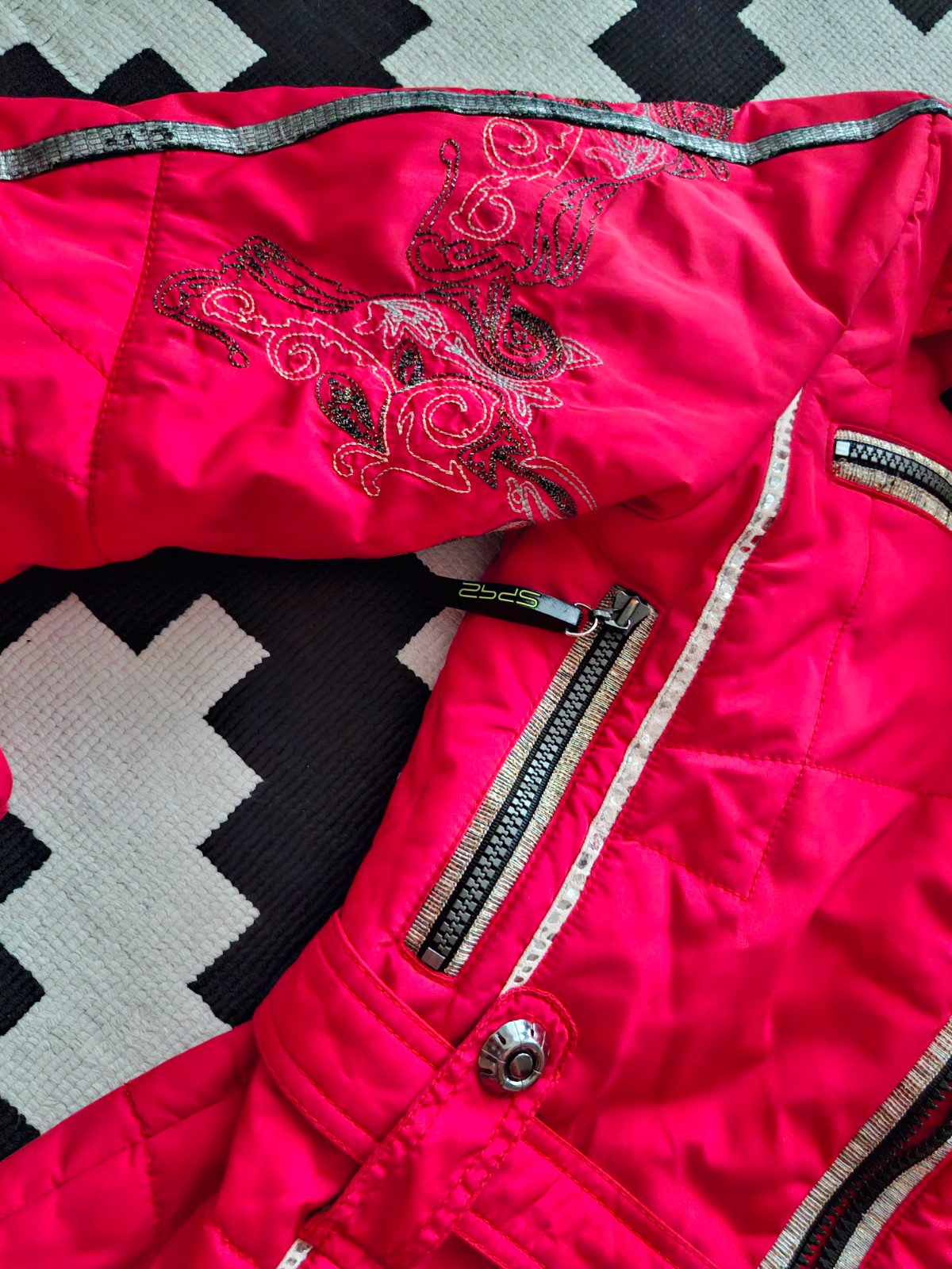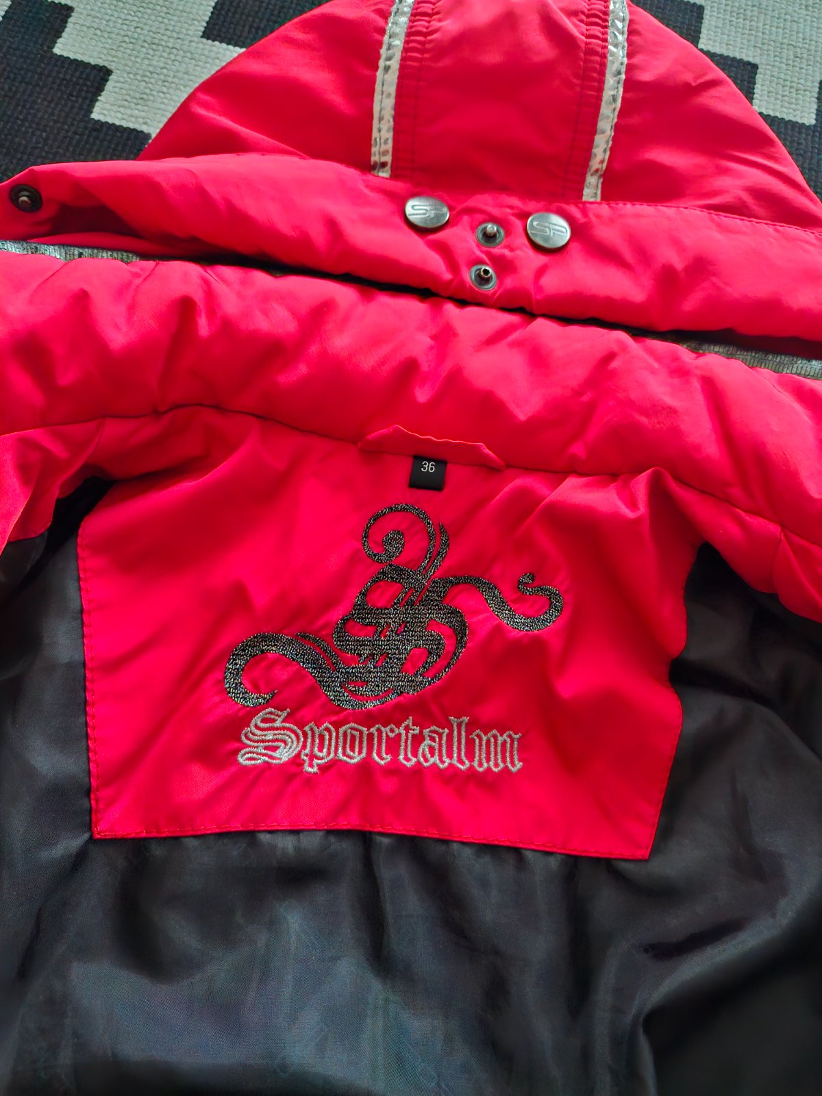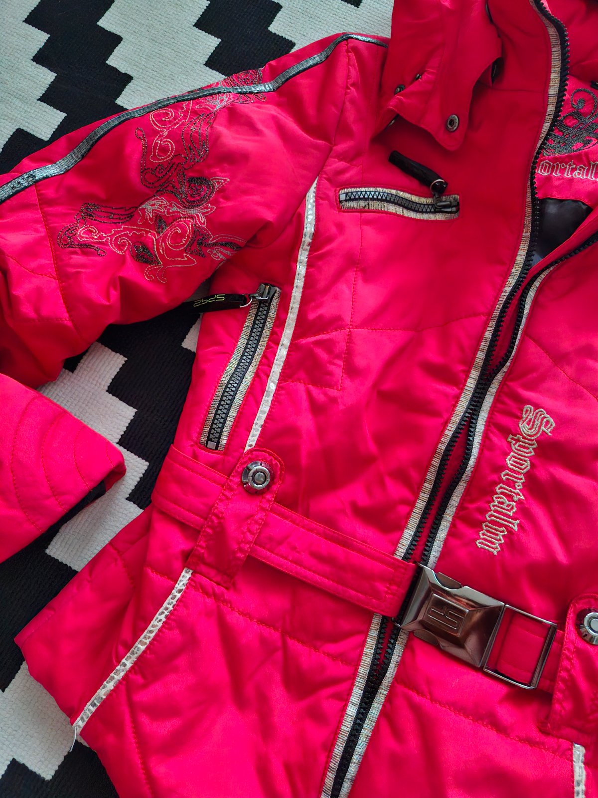 Svieza,velmi stylova super kvalitna lyziarska supravka premiovej zn.SPORTALM pozostavajuca z kvalitnej bundy zn.Sportalm,nadherne farby,uzasne vysite detaily,spona na opasku,krasne tvaruje postavu,velmi zenska,odnimatelna kapucna,vrecko na skipass,so sneznym pasom a nadhernymi detailami,vh,teplucka a pohodlna,v.S,ponosi aj XS,k tomu velmi pohodlne a stylove skvele lyziarske nohavice s vysokym pasom a stylovym opaskom rovnako od tejto renomovanej zn.Sportalm v krasnej tmavomodrej farbe s perletovym leskom,v.S,zodpoveda XS-S,v pase elasticke,vzadu guma,prisposobive,naspodu snezne pasy,moznost pohodlbeho rozopnutia pri obuvani na lyziarku,postranne vrecka,vysoky pas,prijemne hreje aj na krizoch,dokknaly strih,pohodlny+skvelo tcaruje zensku postavu.