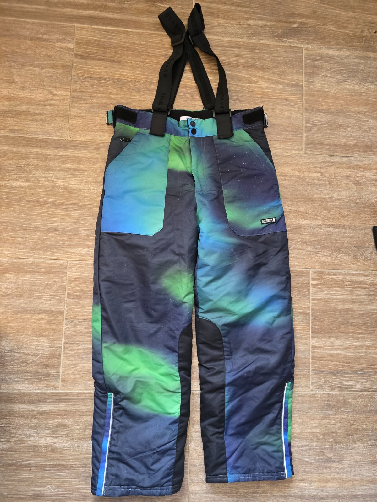 Otepľovaky, lyžiarske nohavice Reserved Majú nastaviteľné traky, dve predné vrecká, zadné vrecká s klopou, farebná celoplošná potlač, nepremokavé s reflexnými prvkami. V ponuke veľkosť 116, 146, 1...