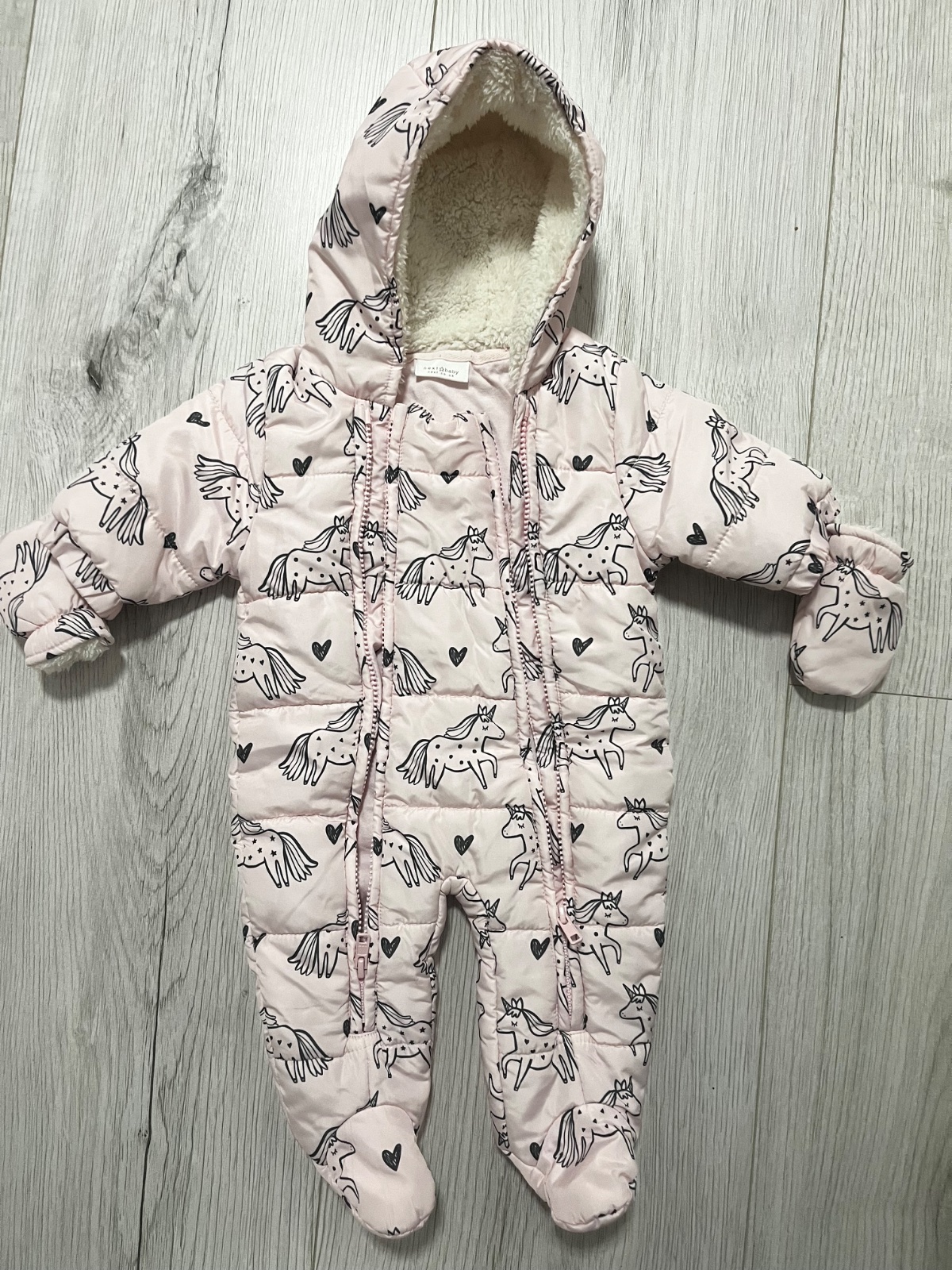 Predám ružový zimný overal s rukavičkami a kapucňou značky Next, veľkosť: 62