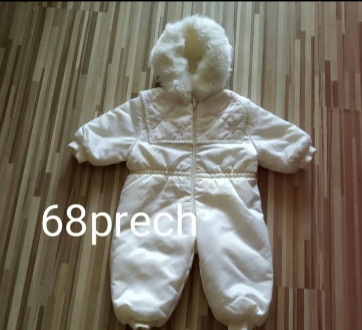 Prechodny overal biely pre dievcatko 3az 6mesiace ,dlhy je aj z kapucnu 75cm ,bez kapucni ma 57cm a dole od rozkroku 22cm ,je nepremokavy