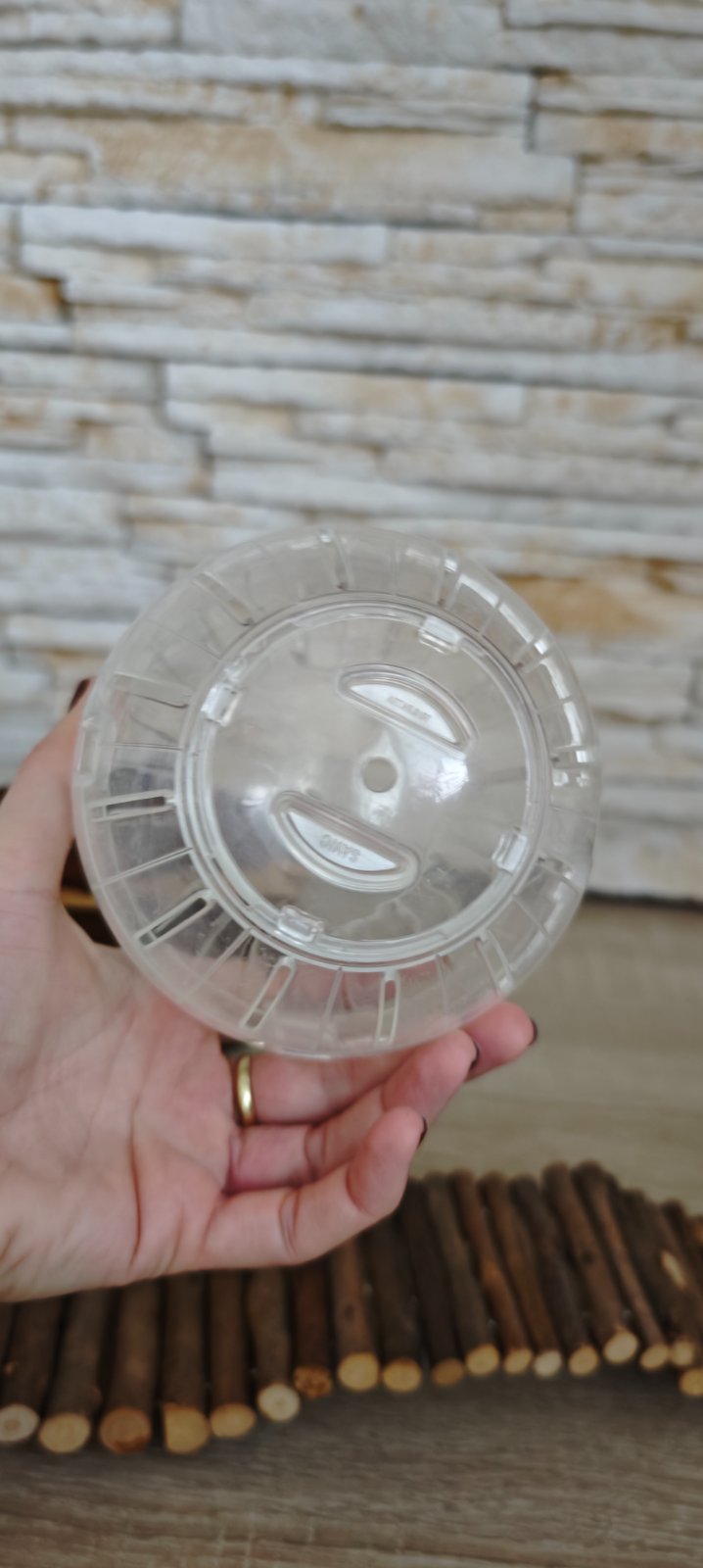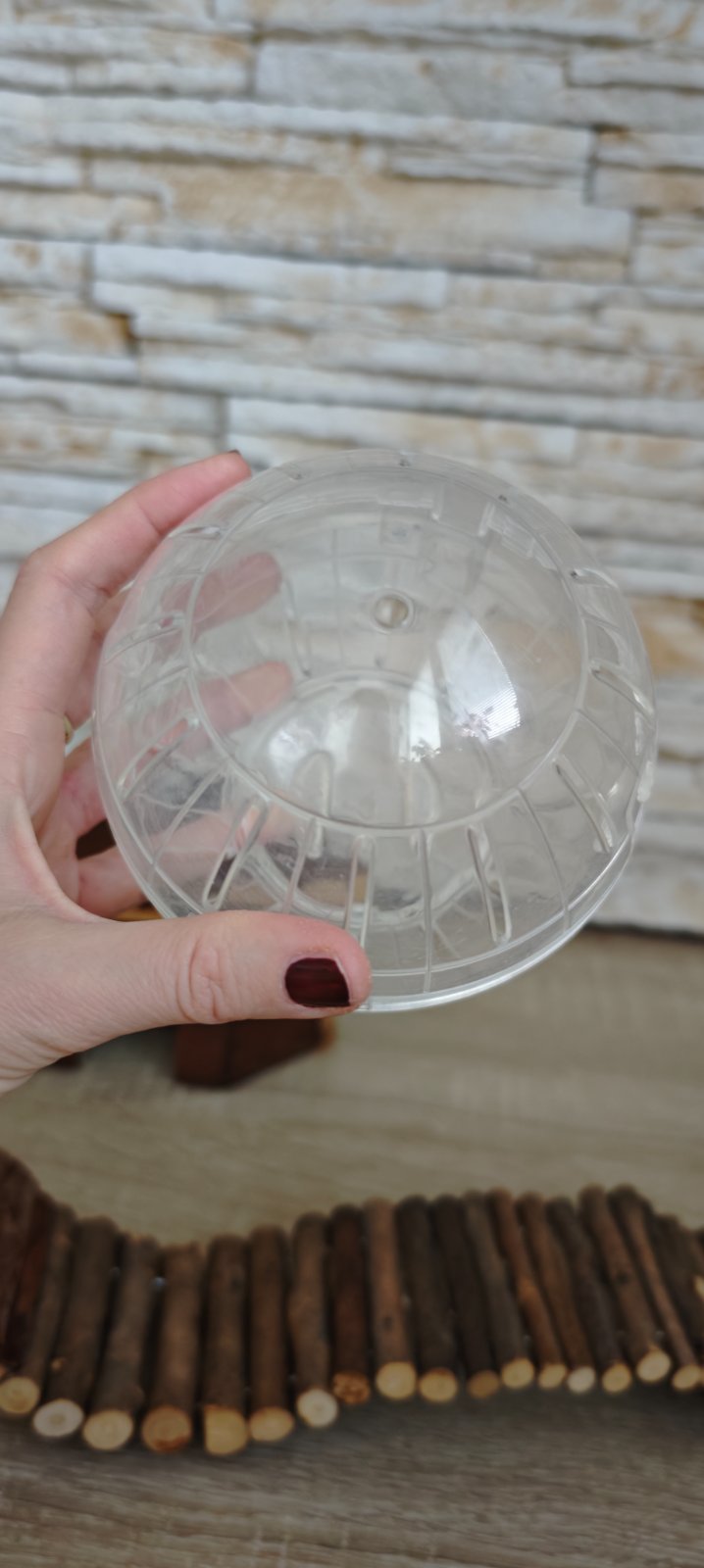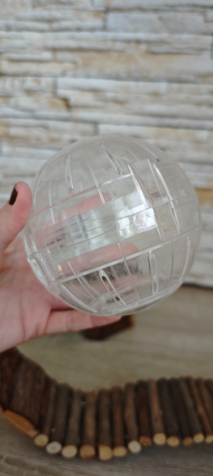 Predám priehľadnú zorbingovú plastovú guľu na hranie pre škrečka. Umožňuje zvieratku voľný pohyb po byte bez toho, že by mohlo zaliezť za skriňu, alebo pod posteľ. Jednoducho škrečka vložíte do gule a uzavriete. Vetracie otvory po stranách umožňujú prísun vzduchu.