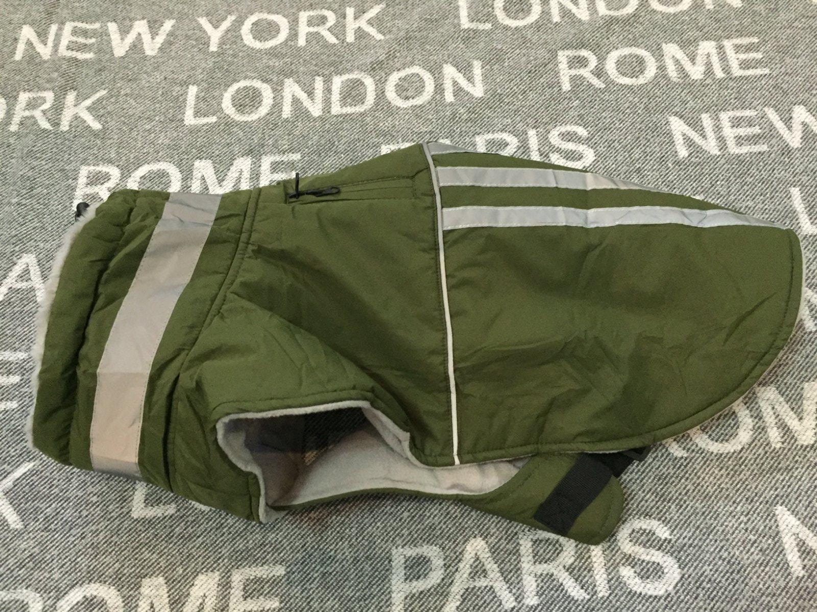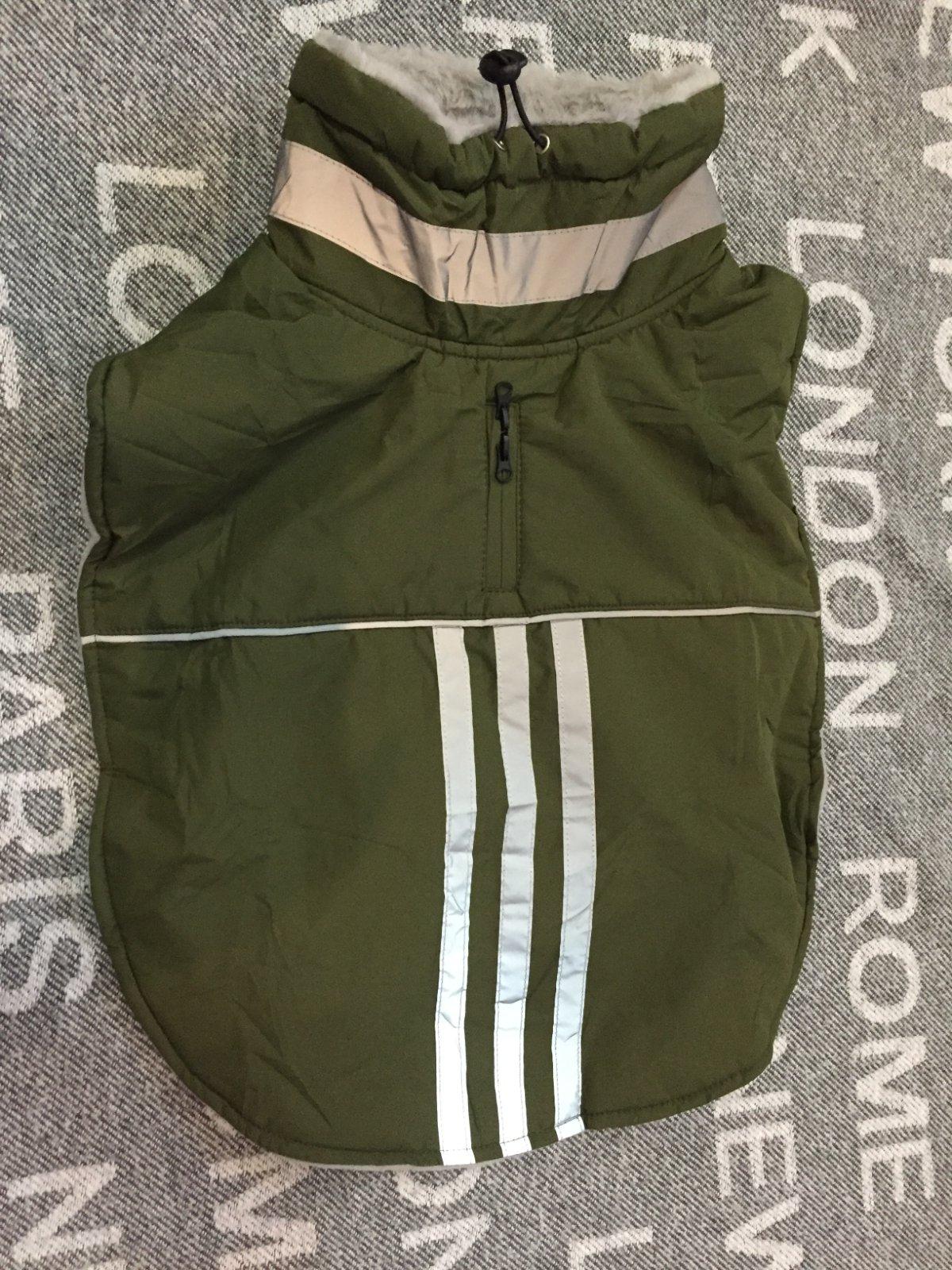 Bundicka je vyskusana a vyprata. Cislovanie je M, pre stredneho psika. Oblieka sa cez hlavu. Sirka goliera je 22cm. Ceka dlzka bundy na chrbate 48cm, dlzka na chrbte bez goliera je 38cm, cela sirka v mieste kde sa pripina voditko je 37cm.