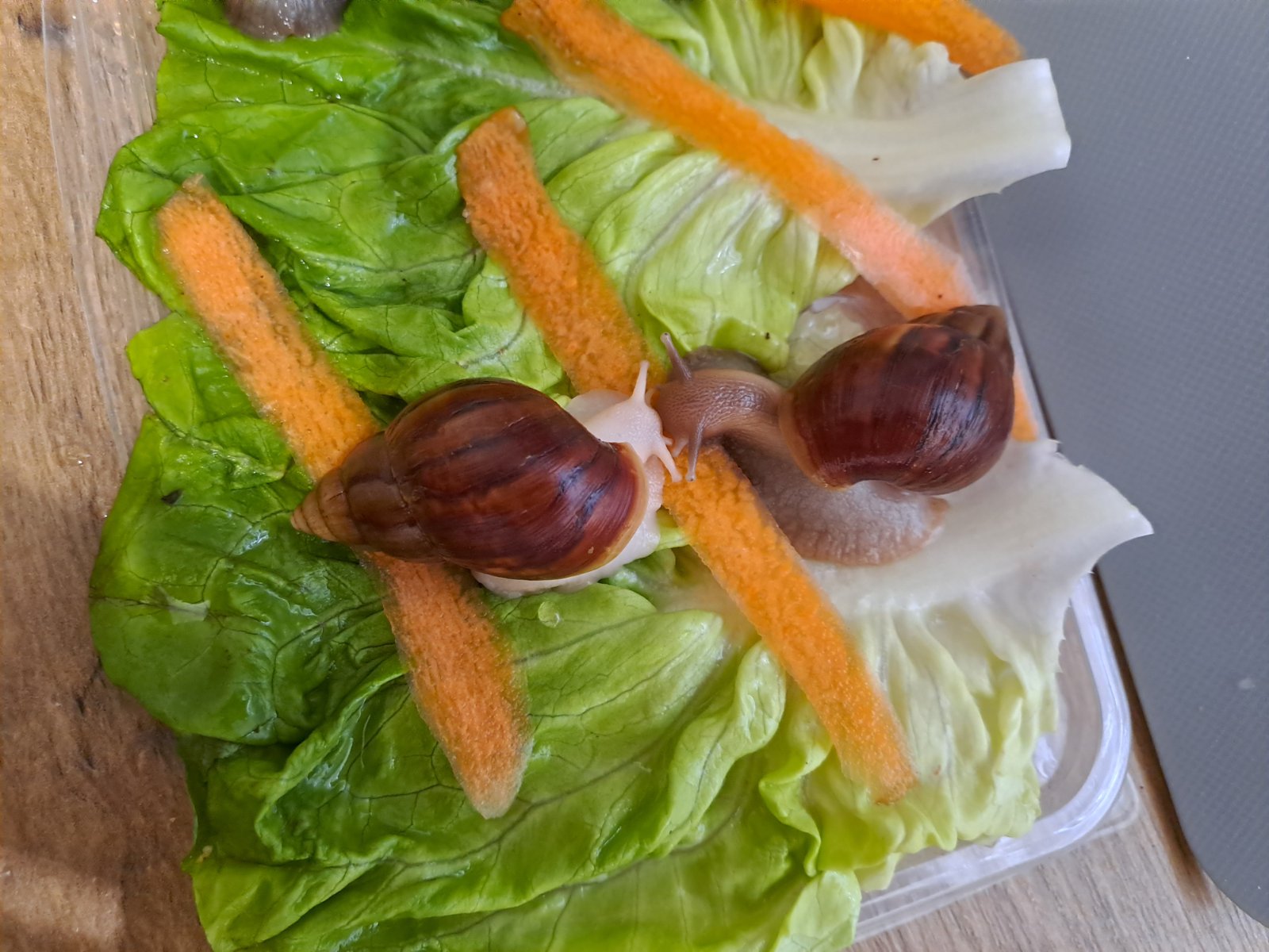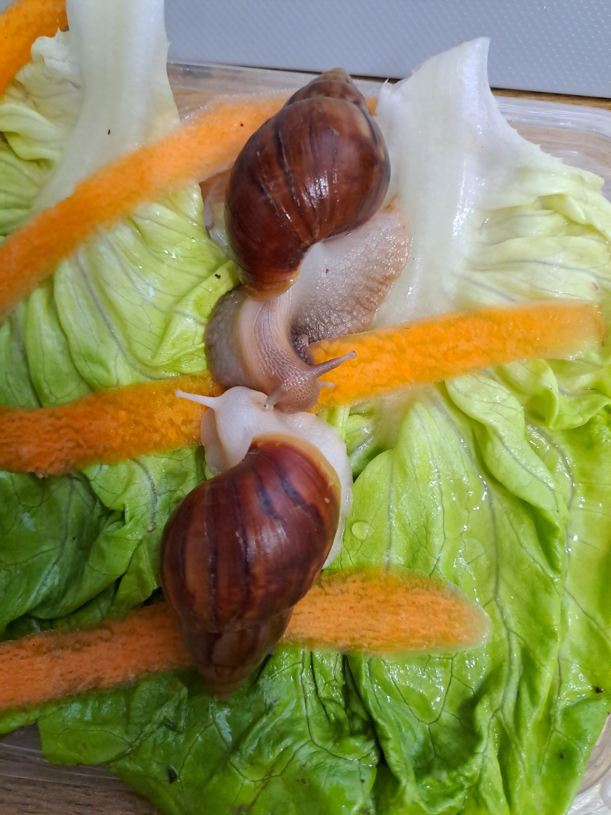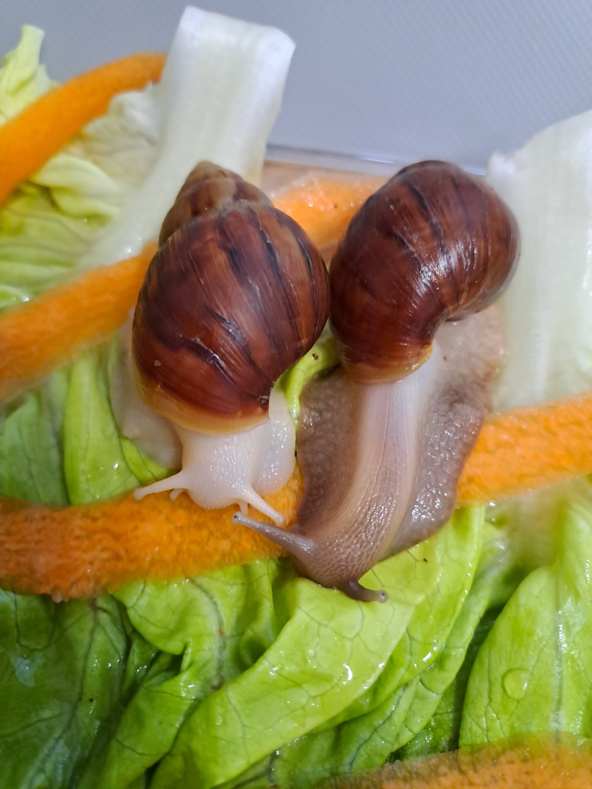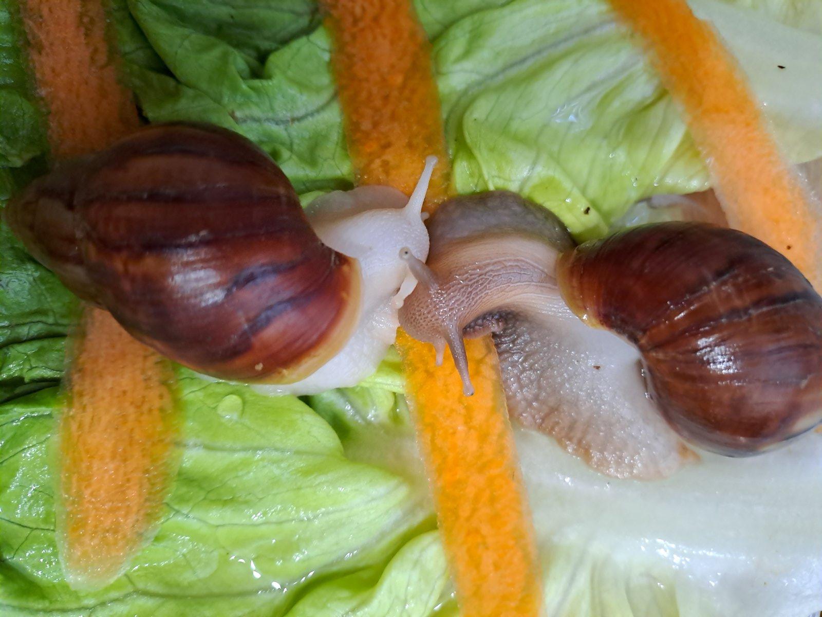 Ponúkam Afrických slimákov hneda ulitka biela a hnedá noha len ako párik .... spolu 12 eur . Možný osobný odber okolie NZ a NR . Bližšie v správe .