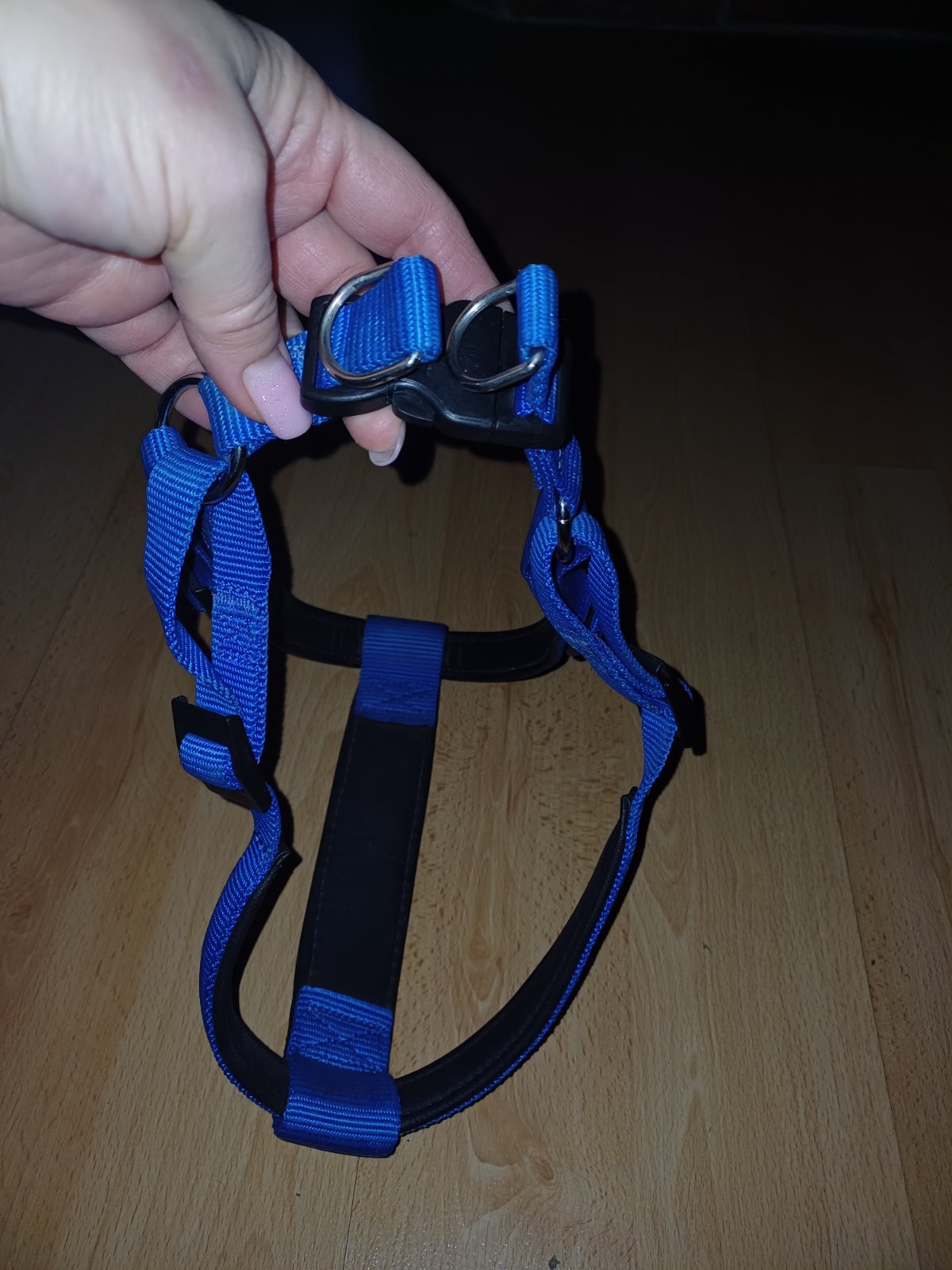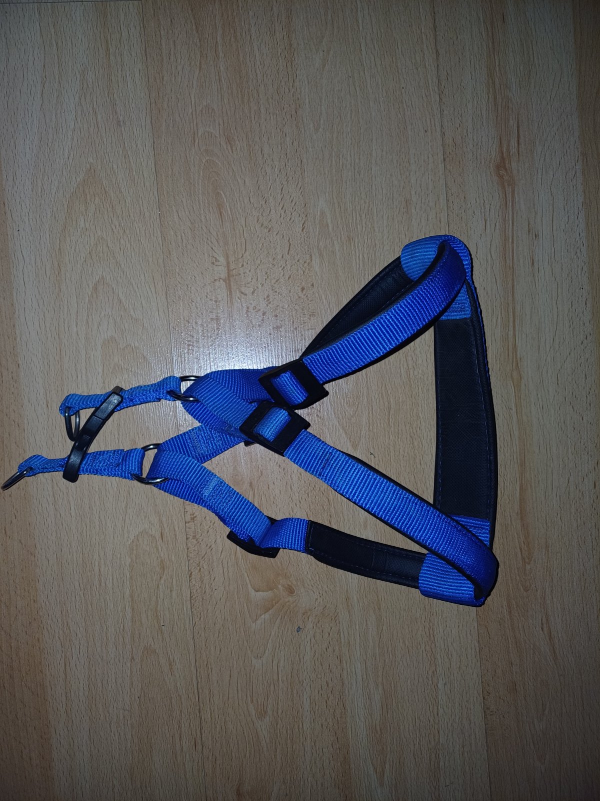 Tréningový postroj pre psa. Len vyskúšaný, nevhodná veľkosť pre nášho psíka. Cena 6€ plus pošta. https://www.clawsnpaws.com.au/product/trixie-easy-walk-harness/