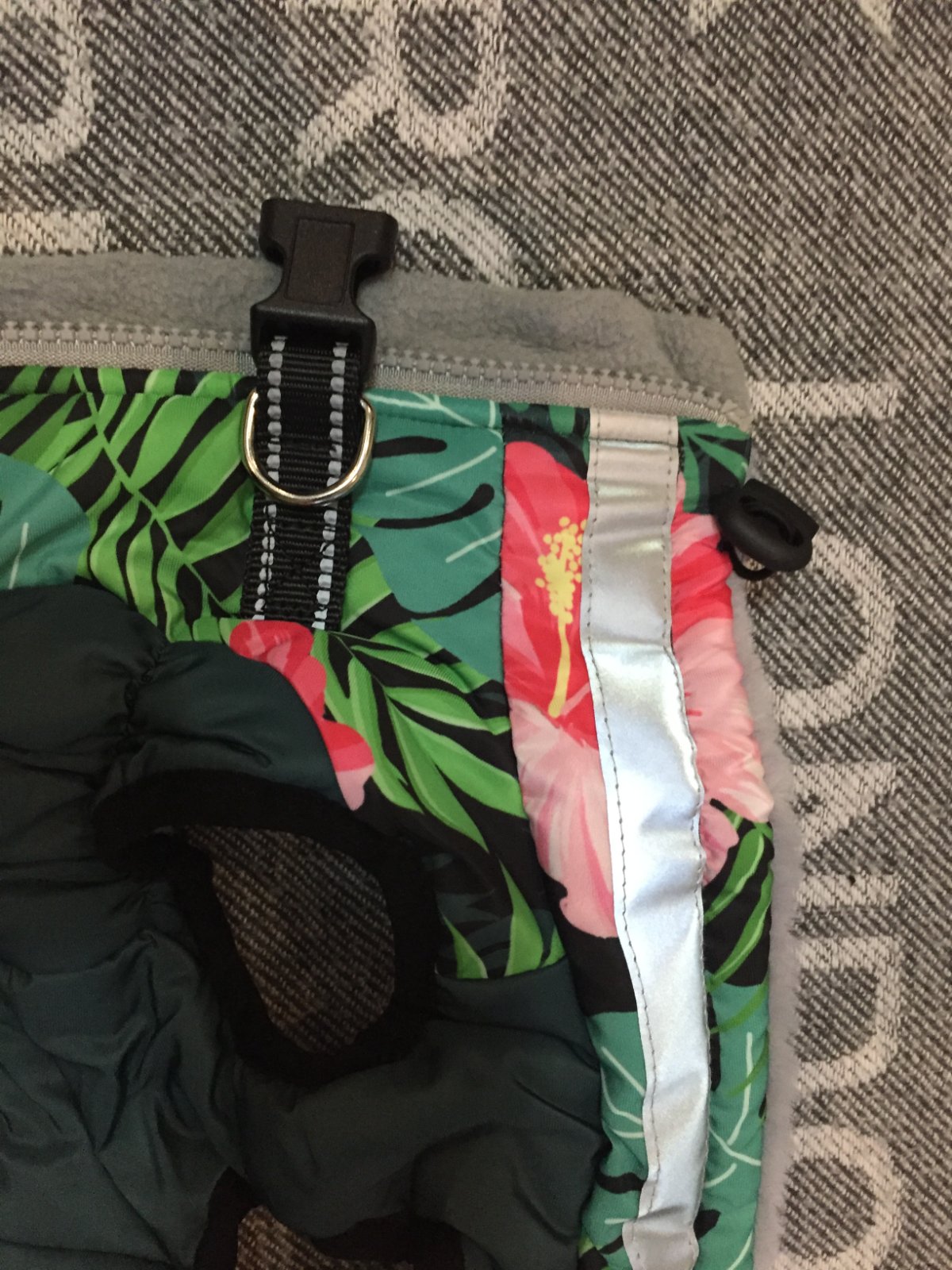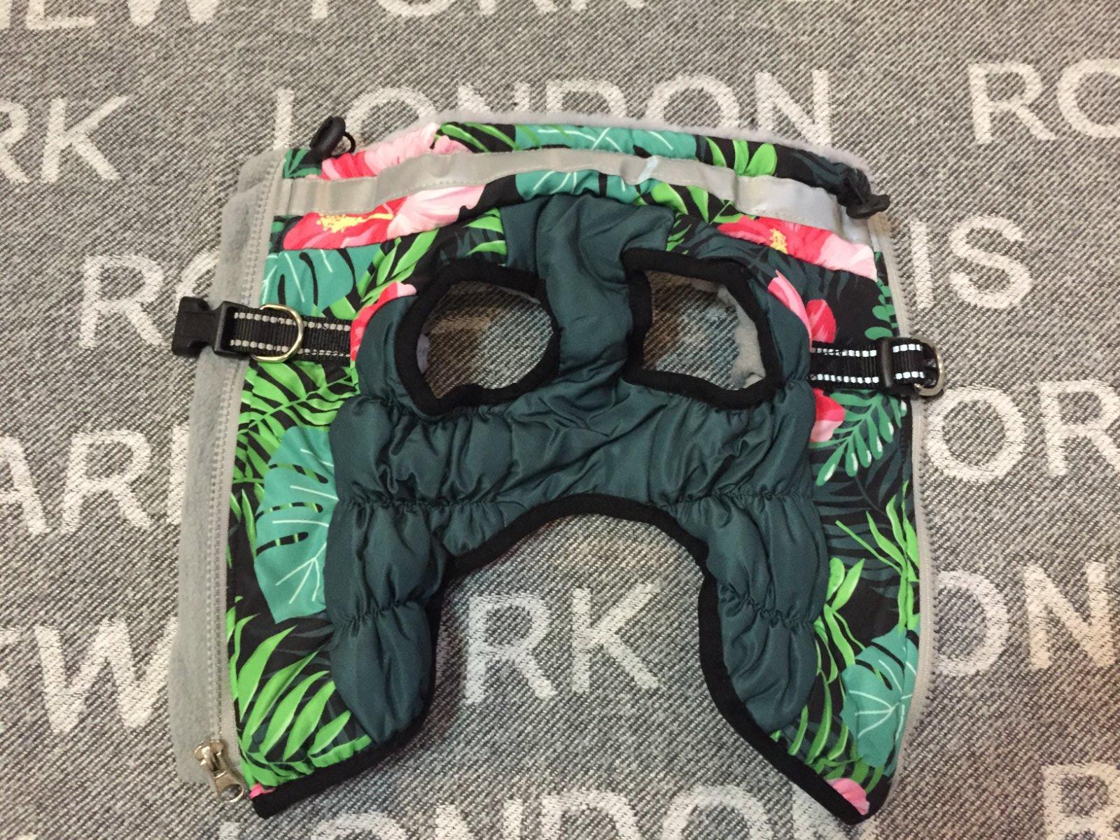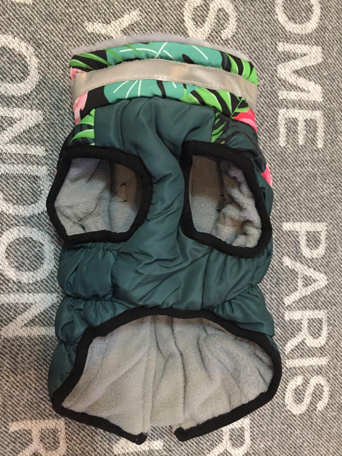 Vetruodolna bundicka pre maleho psika, steniatko, maciatko s postrojom bola len vyprata. Je nenosena. Ma reflexny prvok. Dlzka zpisu na chrbte je 29cm, sirka kde sa pripina viditko je 18cm.