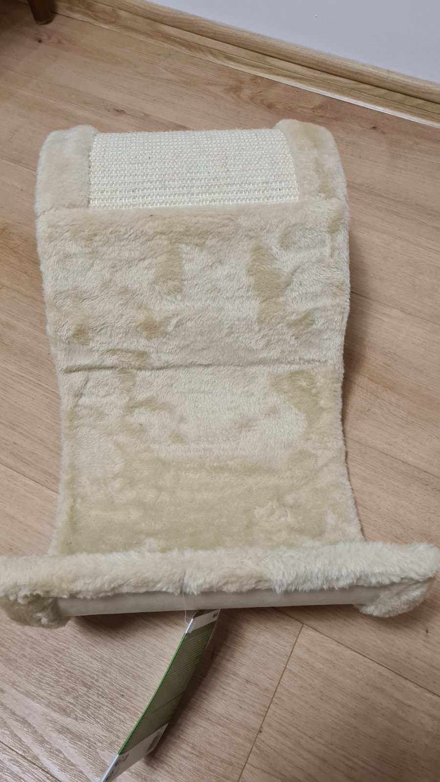 Podložka na ležanie a škrabanie v tvare vlny s mäkkým plyšovým poťahom a stabilnou podložkou z prírodného sisalu, na relaxáciu, preliezanie a brúsenie pazúrikov, rozmery: d 50 x š 29 x v 17 cm