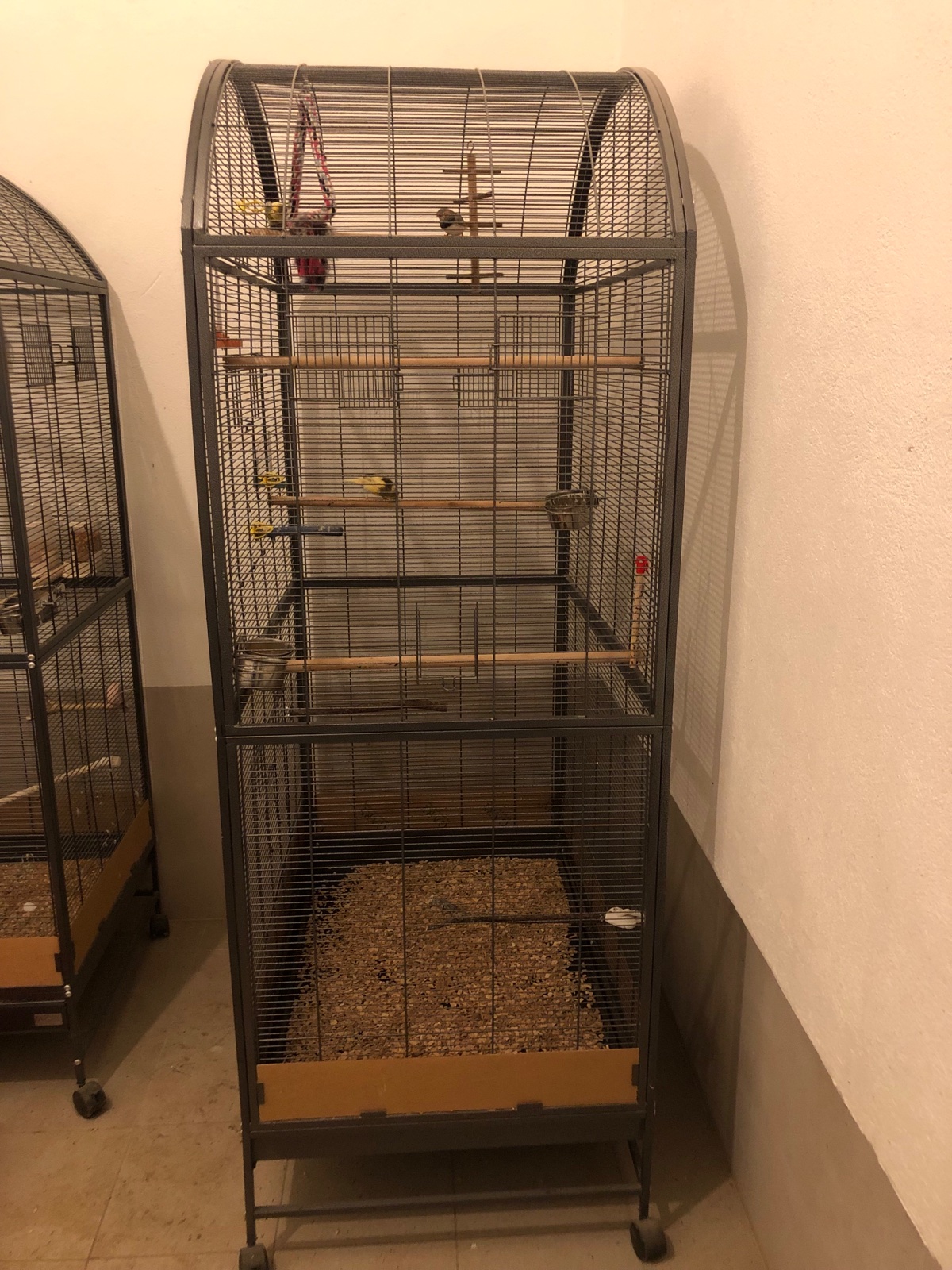 Predám volieru pre vtáky…rozmery: šírka 100cm, hĺbka 65cm, výška 187,5cm…k voliere drevené bidielka…voliera má 2 velké dvierka z predu a 2 malé…z bokov 2 malé…v hornej časti sú dvierka, ktoré slúžia na pohyb vtáčikov von a dnu…mám napredaj dva kusy, dajúsa k sebe pripeniť a urobiť z nich jednu velkú…cena za kus.