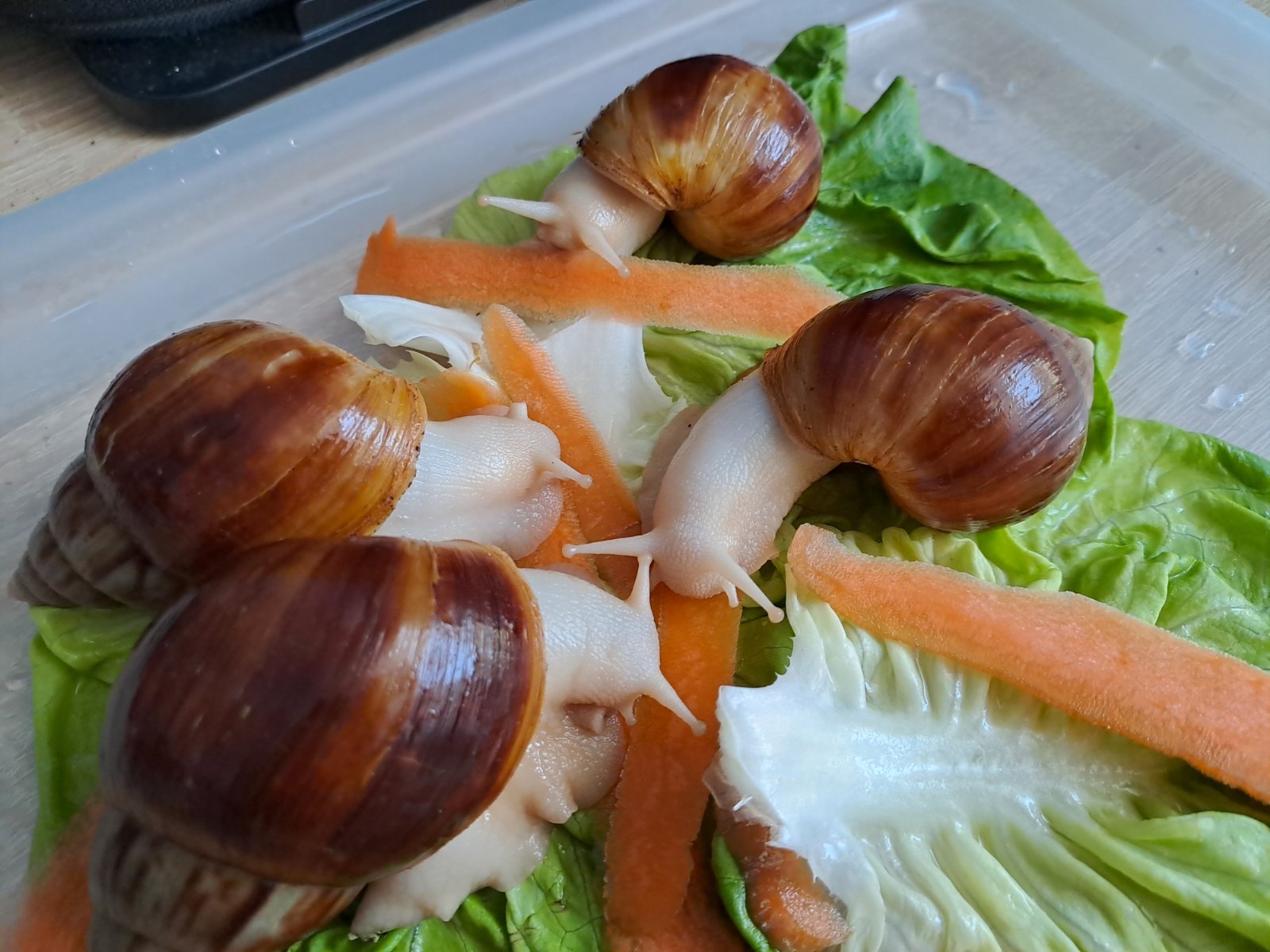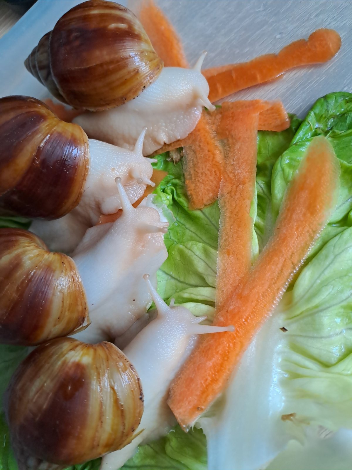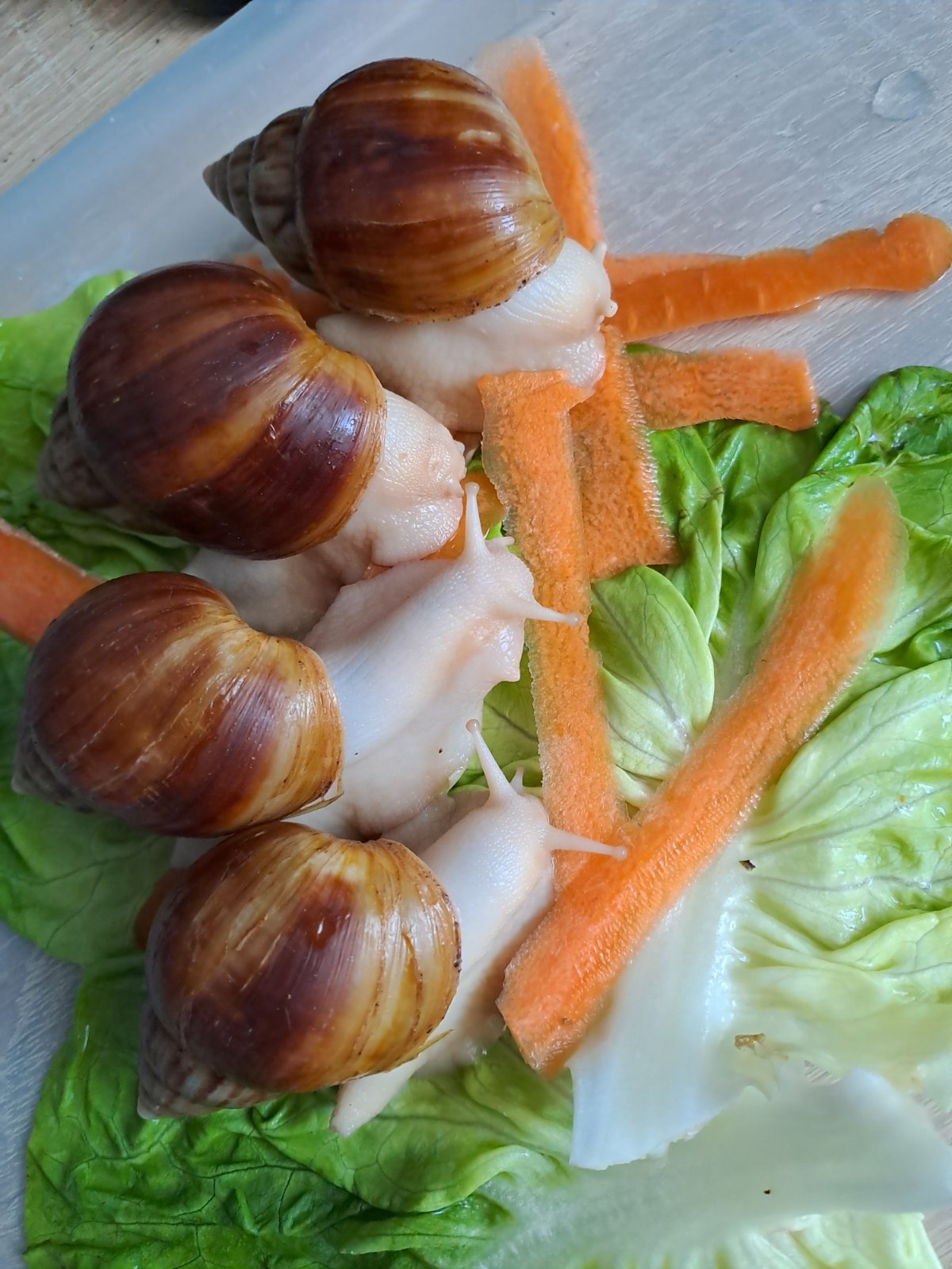 Ponúkam na predaj tieto krásne Africké slimáčiky druh : Lissachatina Fulica Fulica Albinobody mladé, krásne veľmi aktívne . Vhodné pre detičky a alergikov nenáročné na chov . Možný osobný odber alebo viem poslať . Bližšie v správe. Cena za kus 7 eur . Ponúkam aj kokosovu drť . Mletý vápenec . Sépiove kosti . A mach .