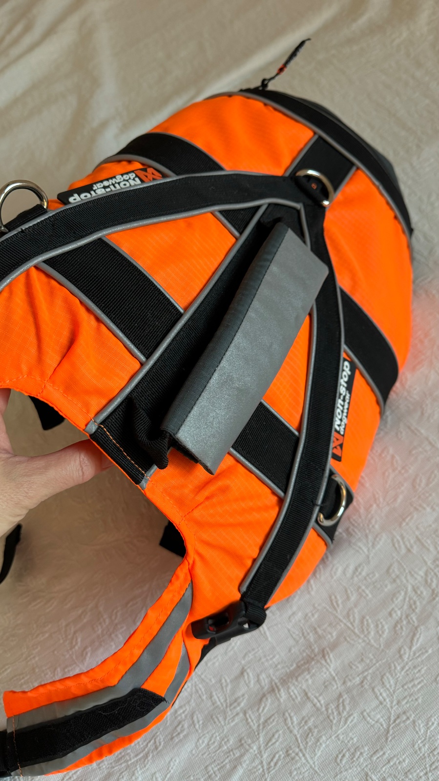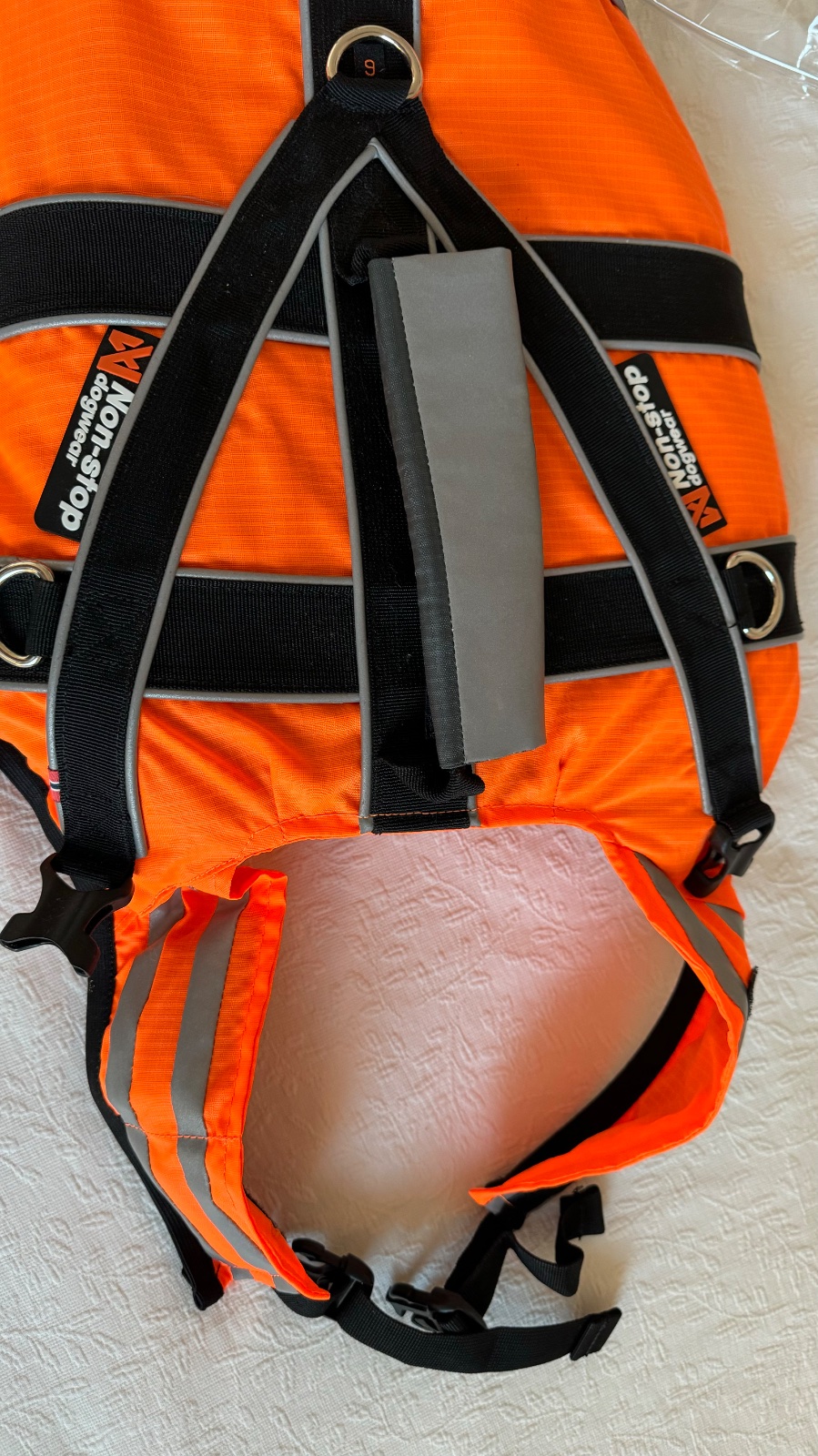 Vyjímečná kvalita a funkce pro zvládnutí všech nejen krizových situací. Plovací vesta Non-stop neomezuje psa v pohybu a díky rozmístění plováků ho ve vodě nepřetáčí. Použité materiály se osvědčily u nejmodernějších plovacích vest určených pro použití lidmi. Vesta je díky nim tenká a lehká. Zapíná se pomocí přezek pod hrudníkem a kolem krku. Plováky umístěné v krční části pomáhají psovi udržet hlavu nad vodou i v případě nehody. Držadlo na zádech je zesílené tak, aby za něj bylo možné psa spolehlivě vytáhnout. Díky dlouhým plovákům, které psovi nadnášejí zadní část těla se v této vestě cítí bezpečně i méně zdatní psí plavci a vydrží tak ve vodě mnohem déle.