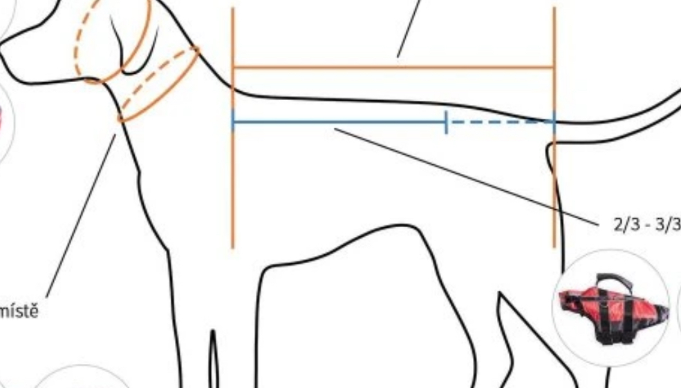 Změřte délku zad svého psa (viz obrázek v galerii) a spočítejte 2/3 z tohoto čísla. To je délka vesty, kterou by Váš pes měl mít. Vesta tedy nemusí pokrývat celá záda psa a většinou jednomu psovi sednou klidně dvě velikosti. Záleží také na tom, jak zdatný plavec Váš pes je. Pokud je to plavec začátečník, kterému se ještě potápí zadek, je lepší zvolit delší vestu. V případě zkušených plavců pak vestu do délky těch 2/3 zad. Hmotnost uvedená ve velikostní tabulce je pouze orientační.
