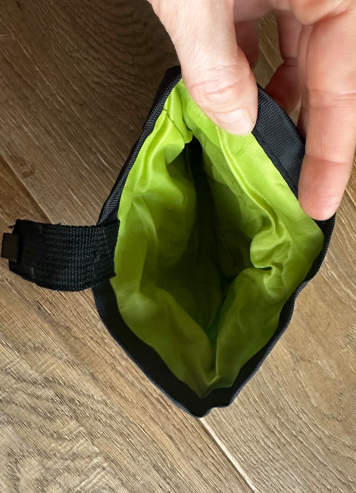 Vrecko na maškrty pre psy. Je vyrobené z nylonu a polyesteru. Pomocou klipu sa dá pripnúť k opasku. Maškrtník sa jednoducho uzavrie pomocou šnúrky. Stabilná vložka umožňuje ľahký prístup k maškrtám.