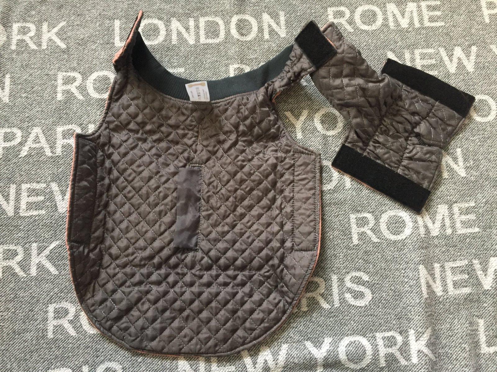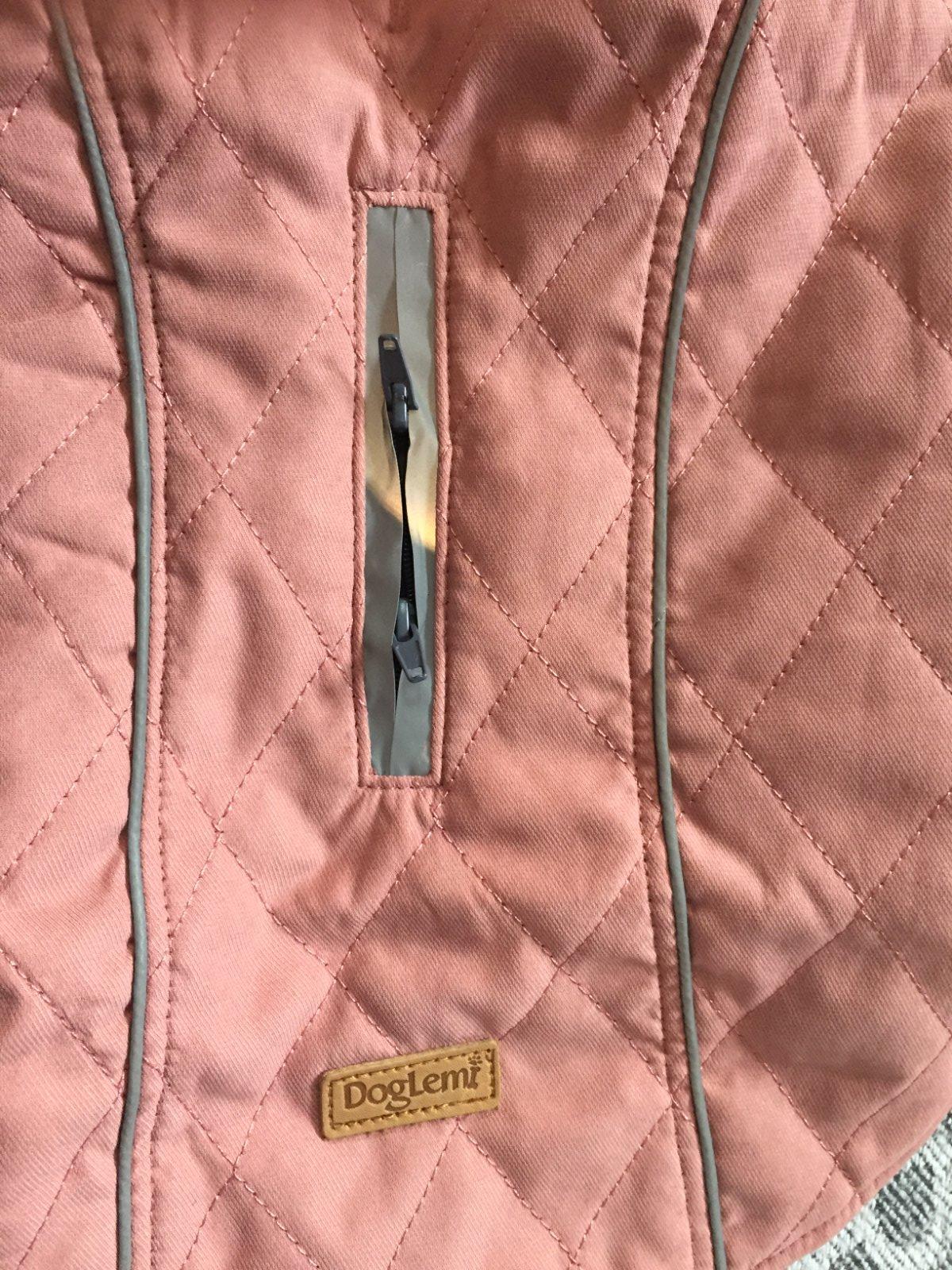 Bundicka Doglemi je nenosena, len bola vyprata. Cislovanie je M, pre stredne velkeho psika. Dlzka cela na chrbte je 40cm, sirka v mieste kde sa pripina voditko je 25 cm.