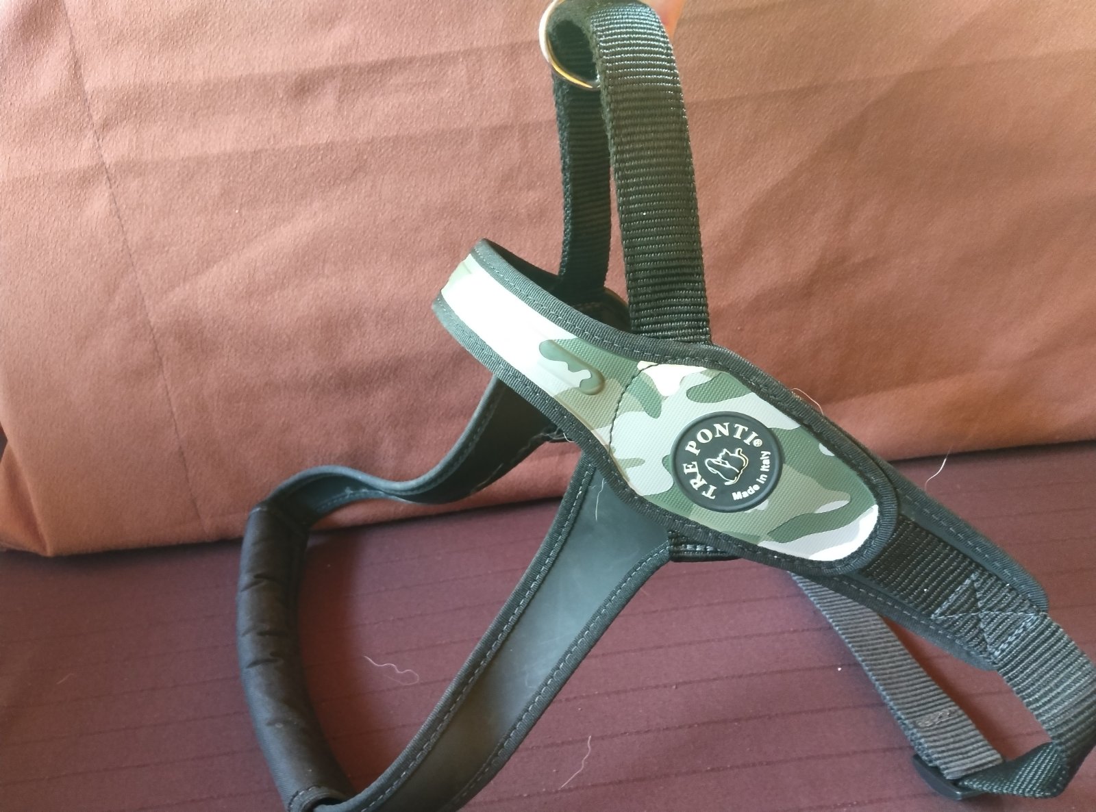 Postroj TRE PONTI reflexny od 30 do 40 kg maskacovy. Praktický postroj, ktorý možno jednoducho nasadiť a upraviť. Málo používaný. Vhodný pre psa typu nemecký ovčiak. Noseny československým vlciakom.