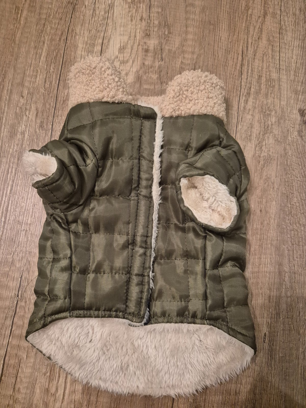 teplakovy overal vhodny pre maleho psika ,čivavu dlžka zo zadu bez kapuce 21 cm natiahne sa az na 24... 1 krat použite