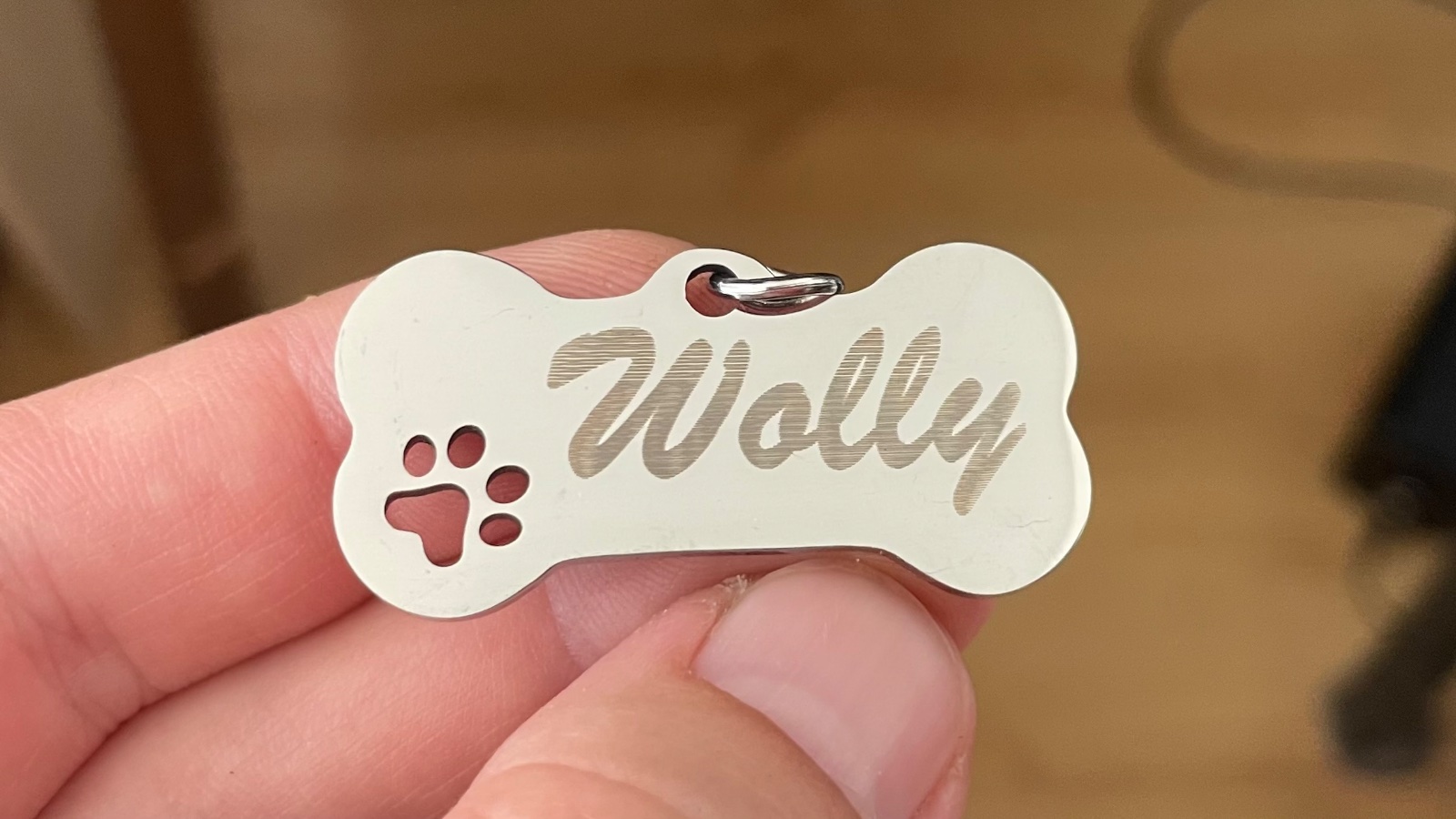 Vyrobím menovku pre psíka. Na druhej strane môže byť vaša adresa alebo kontakt pre prípad že by sa psík zatúlal.