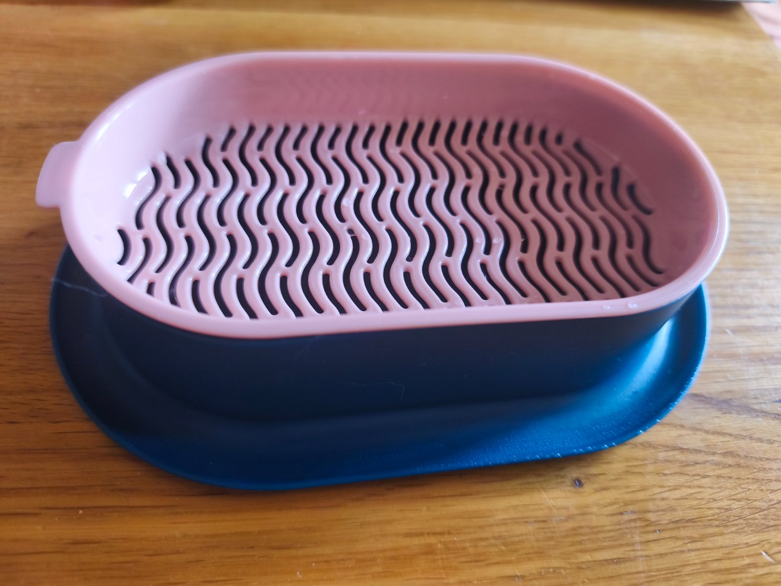 Miska je na pestovanie mačacej trávy, alebo klíčkov. Nepoškodená, raz použitá. Farba- ružová a tyrkysová.