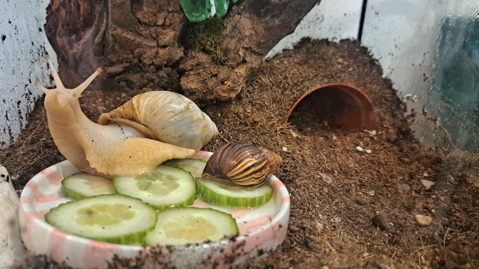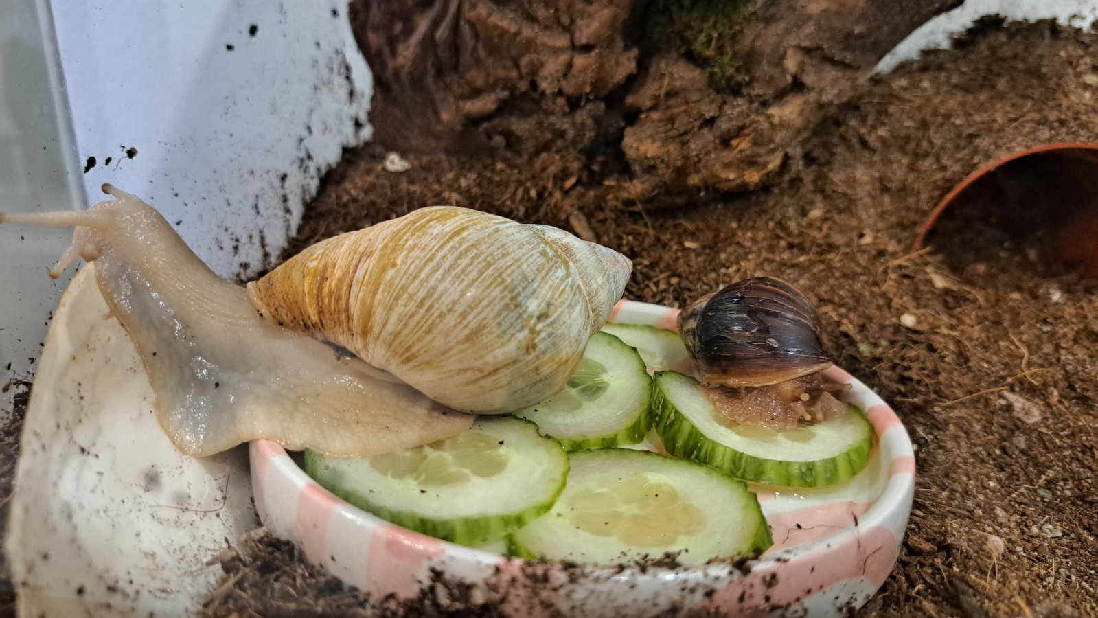 Predám dvoch afrických slimákov aj s terarkom a komplet vybavením (vid foto). Len osobný odber, TV,Sečovce