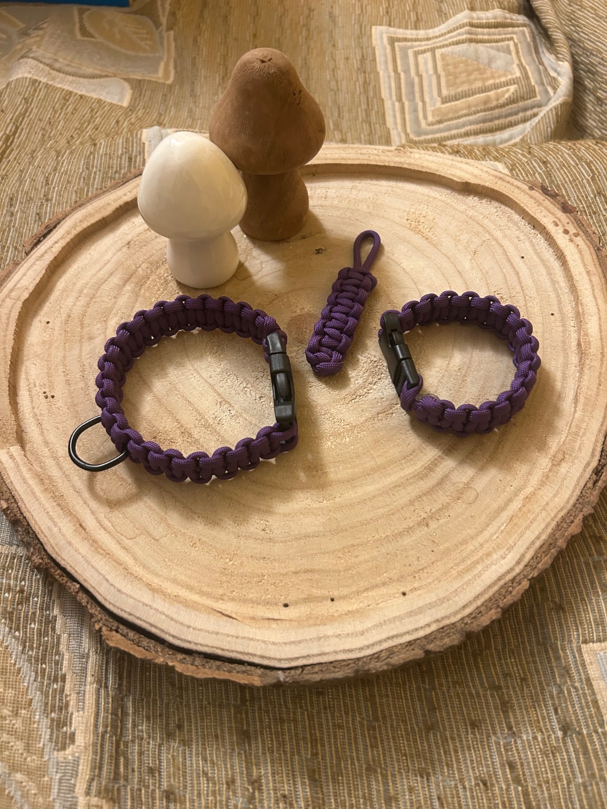 Obojok pre jorkšírskeho teriéra, náramok pre paničku a prívesok na kľúče. Všetko z trvanlivého a kvalitného paracordu. Nová zladená sada v nádhernej fialovej farbe. V prípade záujmu sa môžeme dohodnúť na inej farbe alebo rozmeroch.