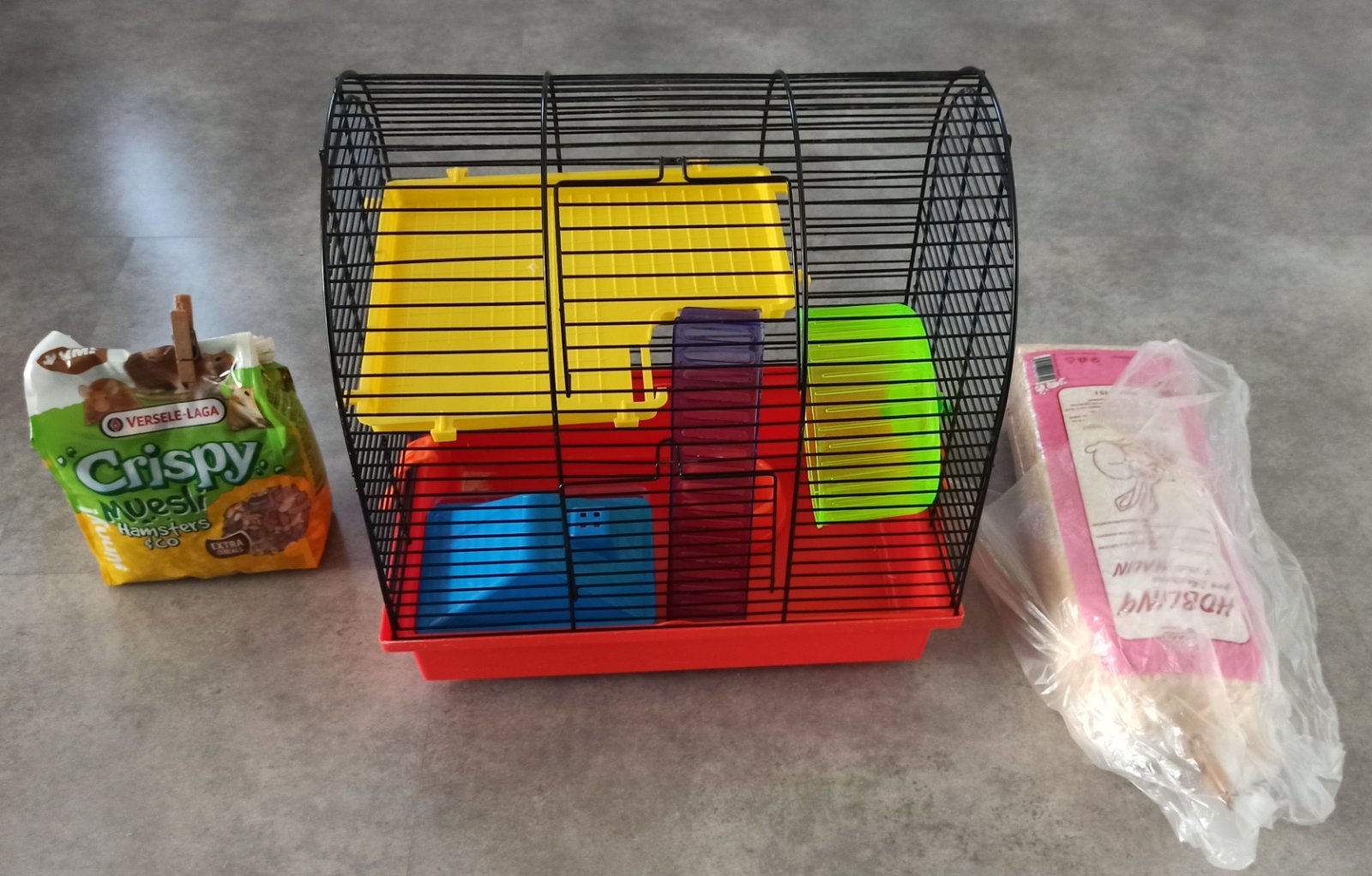 Predám zánovnú klietku pre škrečka aj z podstielkou a krmivom.