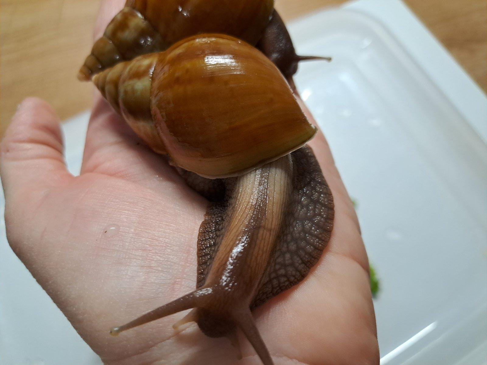 Predám Africké slimáky druh Lissachatina Fulica Madagaskar Light CARAMEL krásne mladé slimáčiky . Karamelová ulitka . Ponúkam aj mletý vápenec. Veľké sépiové kosti . Kokosovu drť . Africké slimáky sú vhodné pre detičky a alergikov nenáročné na chov tichý a milý spoločníci . Možný osobný odber alebo viem poslať. Bližšie v info v správe ! Cena za kus 10 eur . Slimáky sú väčšie .