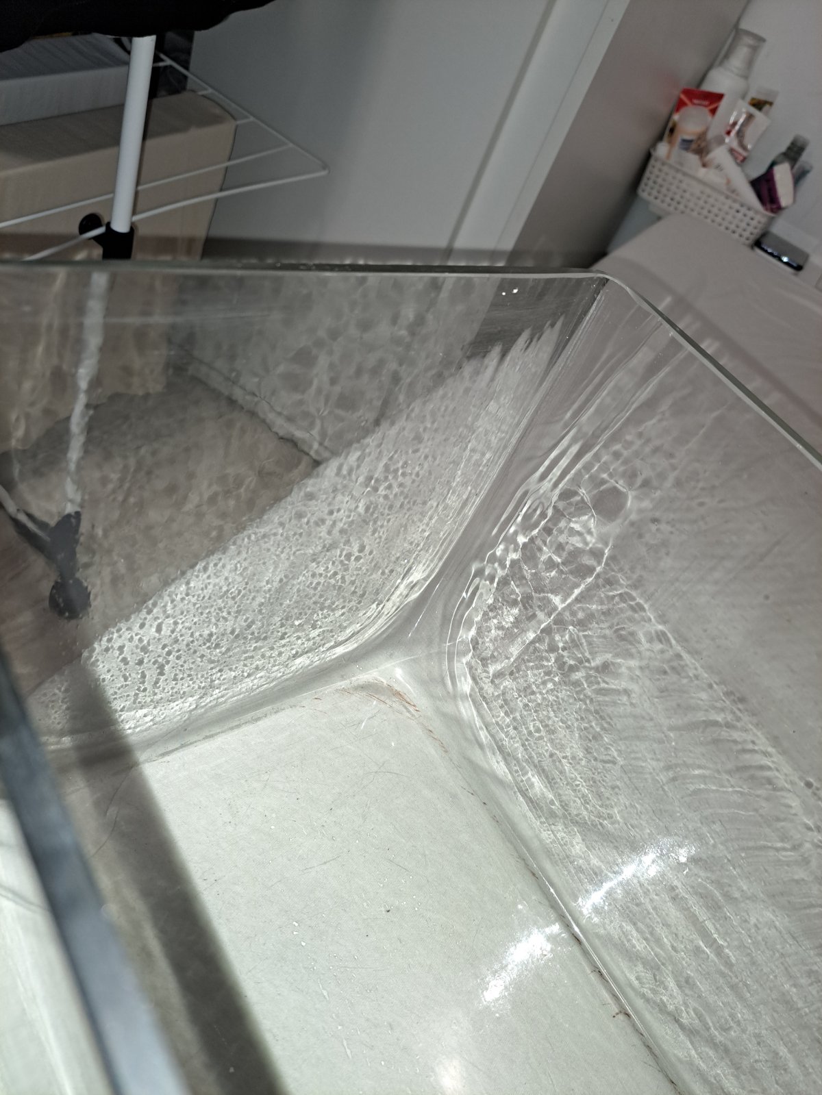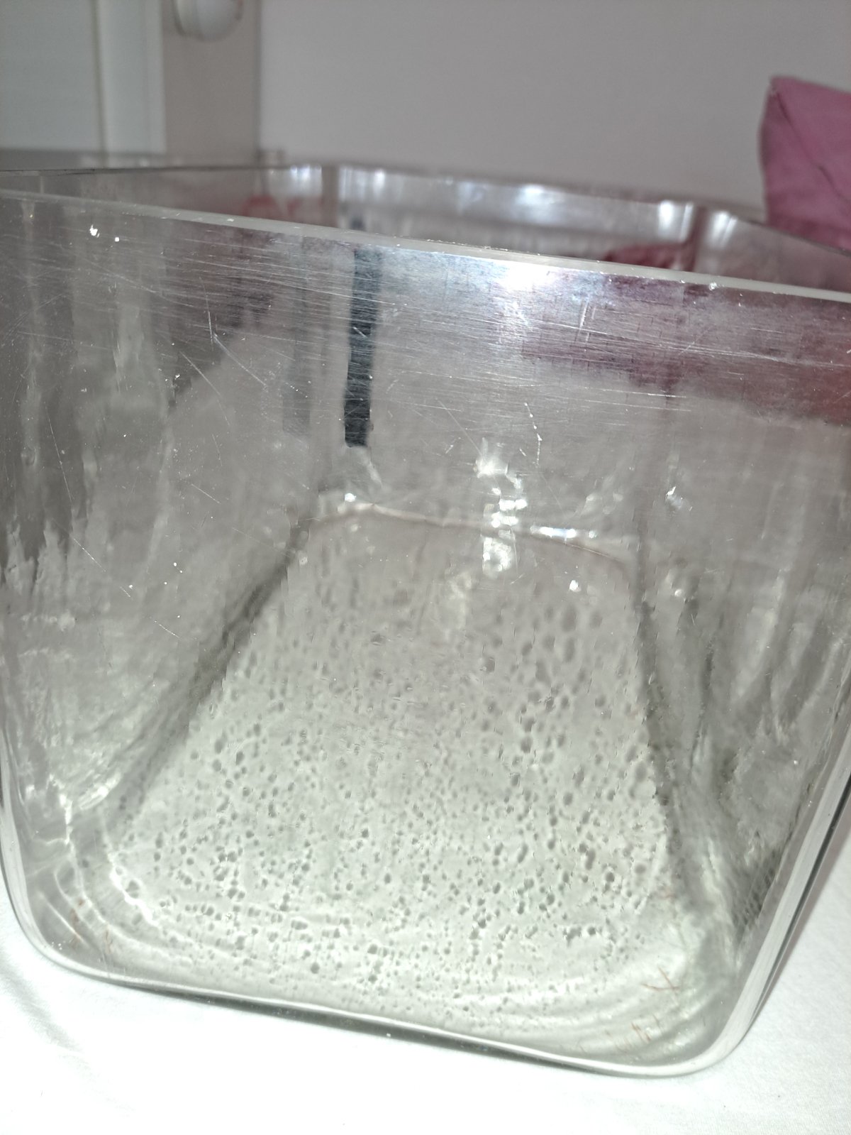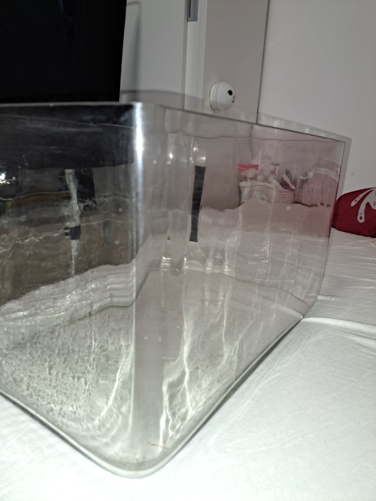 Je z jedneho kusu skla cize nieje lepene. Bez poskodenia. Davam k nemu este filter, ohrievac, sietku a rucnu pumpu na vodu. Pre ryby, korytnacky, skrecky... cena za vsetko.