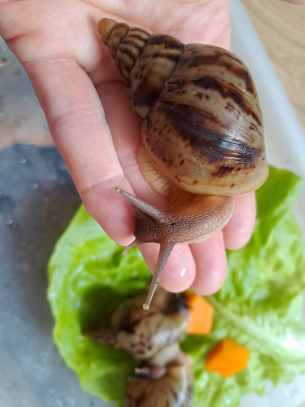 Predám Africké slimáky 🐌🐌 druh Lissachatina reticulata klasik ..... menšie sú 4.,50 eur kus ......a väčšie sú 6,50 eur kus . K dispozícii mám krásnych 20 ks menšie a 10 ks väčšie jedince . Popis : Africký slimáci sú nenáročný na chov tichý a milý spoločník vhodný pre detičky a alergikov či seniorov kohokoľvek kto má rád zvieratká. S chovom veľmi rada poradím .... taktiež ponúkam mletý vápenec 250g , sépiove kosti a kokosovu drť za fajn ceny !!! Je možný aj osobný odber alebo viem poslať po dohode poštou. Pekne a bezpečne zabalím ..... Bližšie info správa . Ďakujem pekne 🐌🐌👌❤️💙