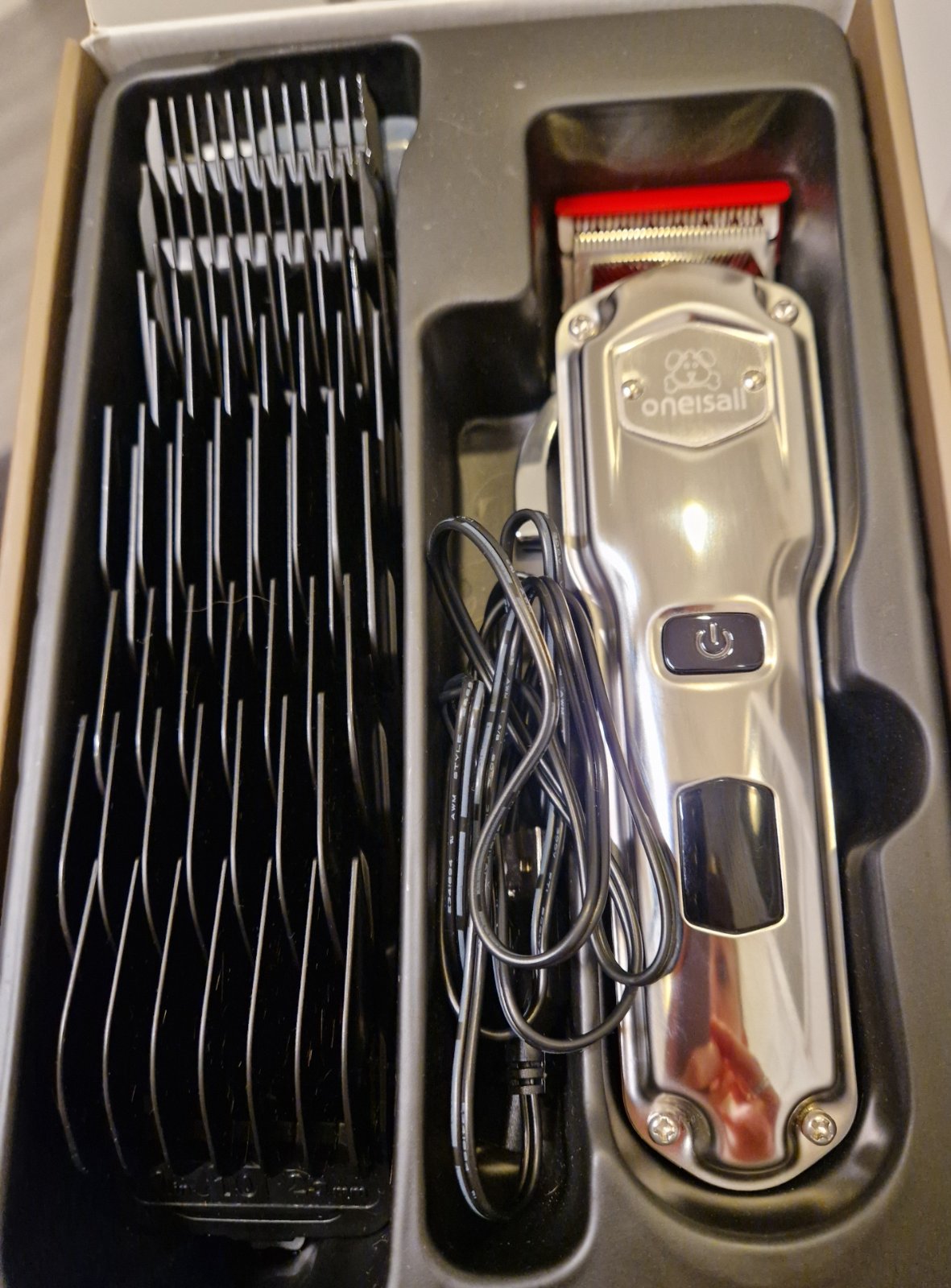 oneisall tichý strojček aj na hustu psiu srsť, 55dB, vodeodolny, jedno nabitie vydrzi az na 4 hodiny,použitý asi 3kra