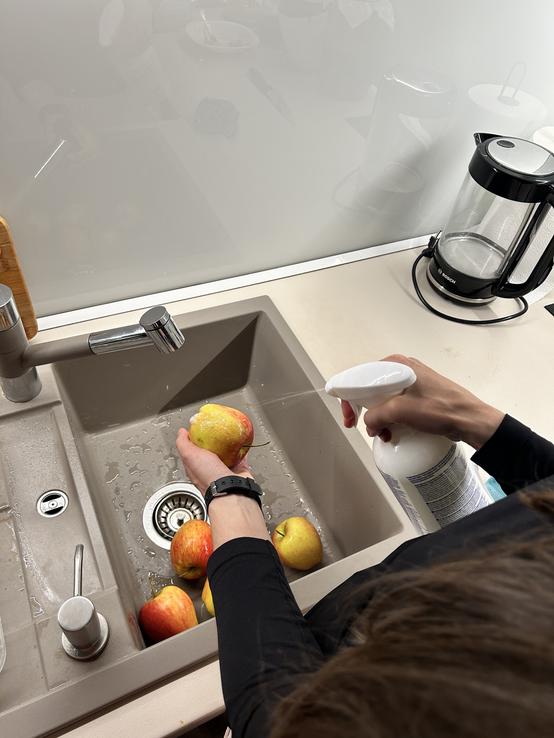 Na povrchu prírodných plodov sa často nachádza nielen prach a zvyšky z manipulácie, ale aj mastný vosk a ďalšie chemické látky používané pri bežnom pestovaní. Obyčajná voda ich všetky neodstráni. Tento vegánsky prírodný prípravok pomáha obmedziť konzumáciu nežiaducich látok z povrchu ovocia a zeleniny – a je preto skvelým pomocníkom v domácnosti.