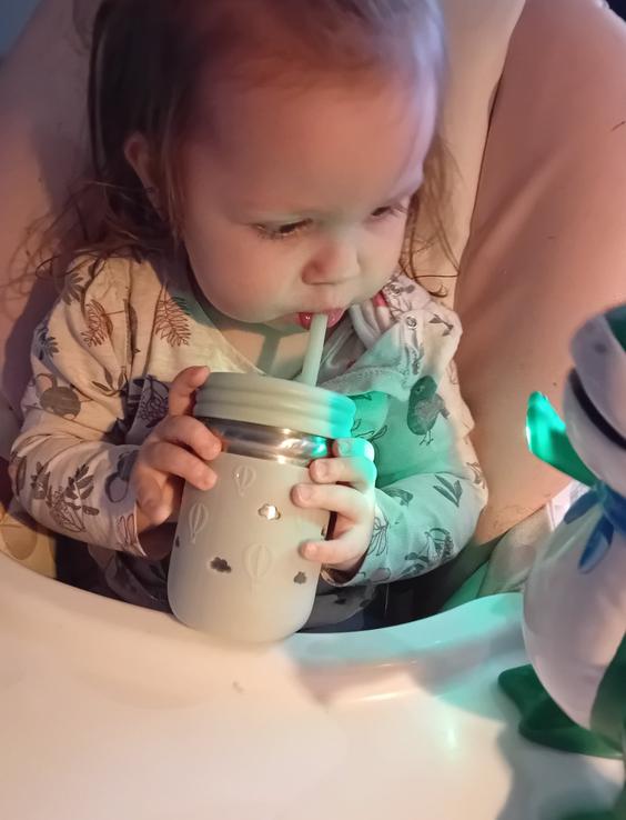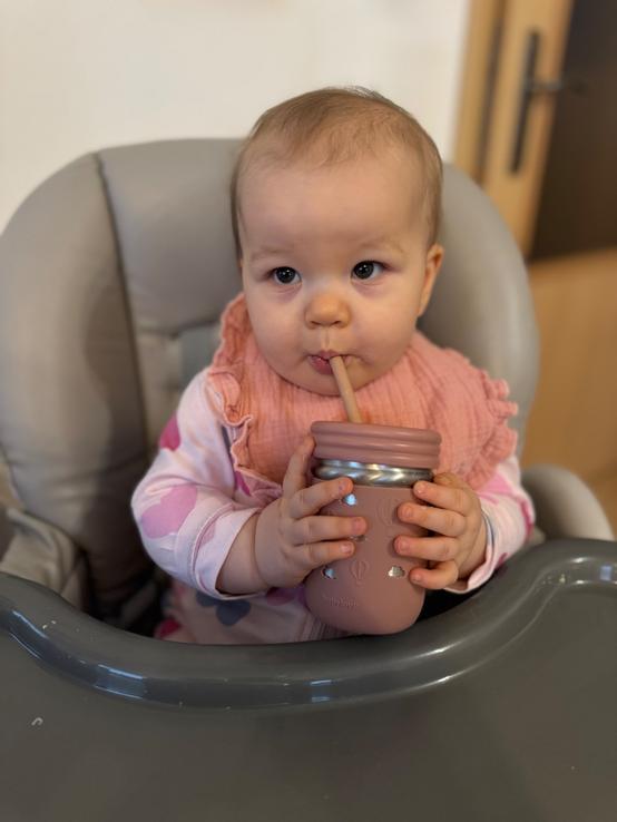 Pohárik je pevný, dieťa ho dobre drží v rukách, silikónový povrch sa nešmýka. Slamka je ohybná, takže dieťa z nej pije bez problémov. Oceňujem najmä jednoduché čistenie, všetko ide rýchlo rozobrať. Pre úplne malé deti však nie je ideálny, viac sa hodí pre deti približne od jedného roka.☺️