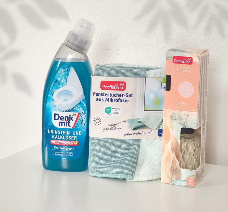 Balík čistiacich prostriedkov a pomôcok zn. Denkmit a zn. Profissimo