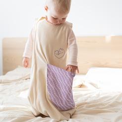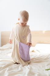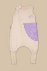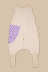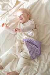 Celoročný merino spací vak Vačice - Tulip v jemnom krémovom prevedení s fialovým vreckom a praktickými nožičkami predstavuje ideálne riešenie pre pokojný spánok dieťatka počas celého roka. Vďaka kombinácii špičkovej merino vlny a organickej bavlny zabezpečuje dokonalú termoreguláciu a priedušnosť, zatiaľ čo premyslený strih rešpektuje prirodzenú potrebu voľného pohybu.