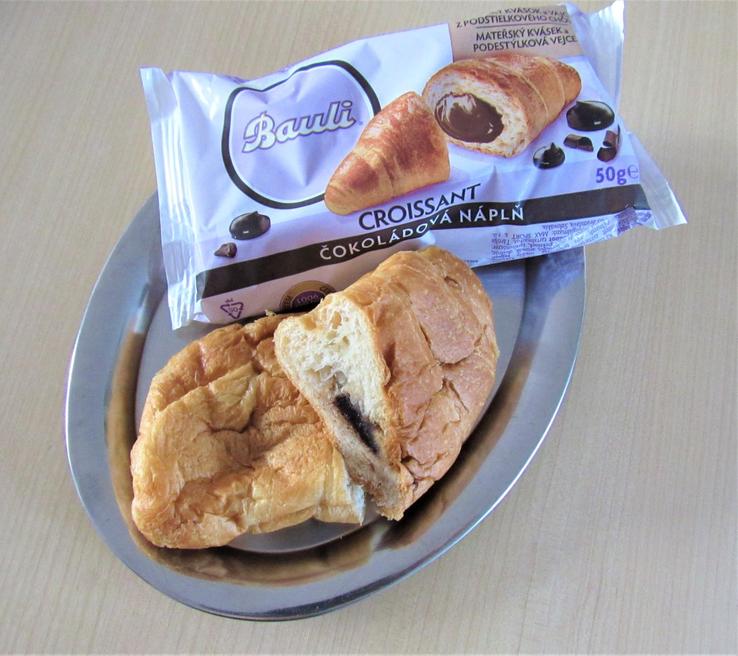 Cesto je nadýchané, mäkké, nepresladené. Čokoládová náplň je top. Je krémová, jemná, nepresladená, z horkej čokolády a je jej dostatok. Ostatných náplní bolo menej. Na druhé miesto dávam marhuľovú príchuť. Je svieža, nie príliš sladká, ale je jej pomenej. Na tretie vanilkovú, keďže jej bolo málo a bola nevýrazná, croissant pôsobil suchšie.