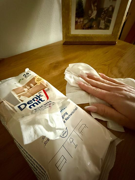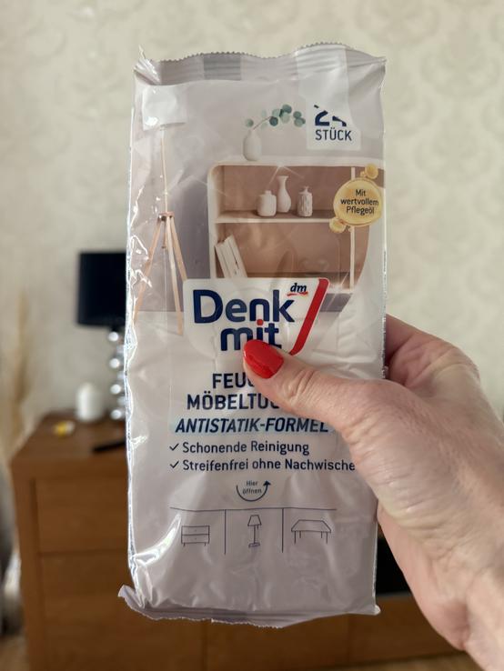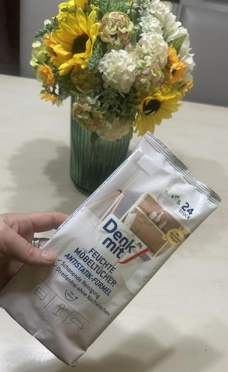 Denkmit vlhčené utierky na nábytok sú ideálne na rýchle upratanie prachu bez toho, aby som musela vyťahovať viacero čistiacich prostriedkov.