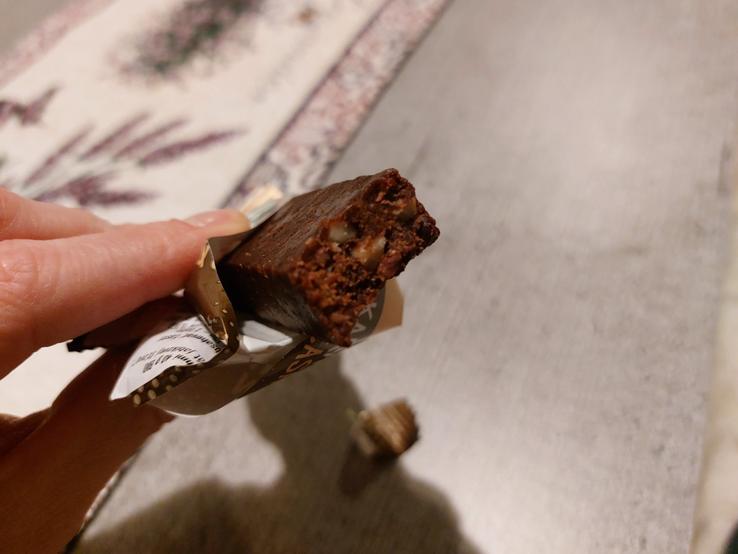 Ďatle, kešu a kakao - je vždy dobrá kombinácia. Akurát sladká (nie presladená), príjemne kyslasto jemnulinko horký závan sýtej tyčinky. Výborná aj v lete na výlety, lebo sa neroztopí, dodá kopec dobrej energie. Vzhľadom na suroviny, je vo veľmi dobrej cene 👌