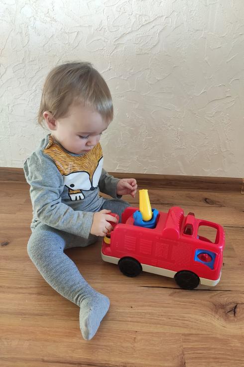 Syna baví otáčať kolieskom, na ktorom je hasič, čiže je aj skvelou voľbou pri motorike.