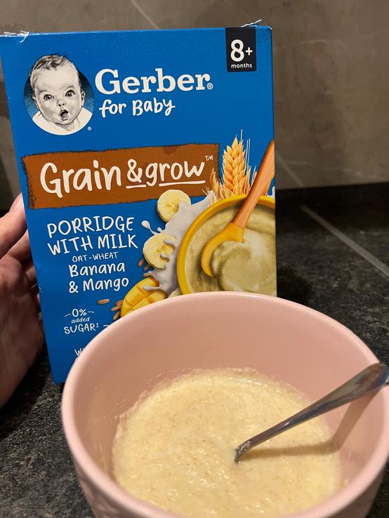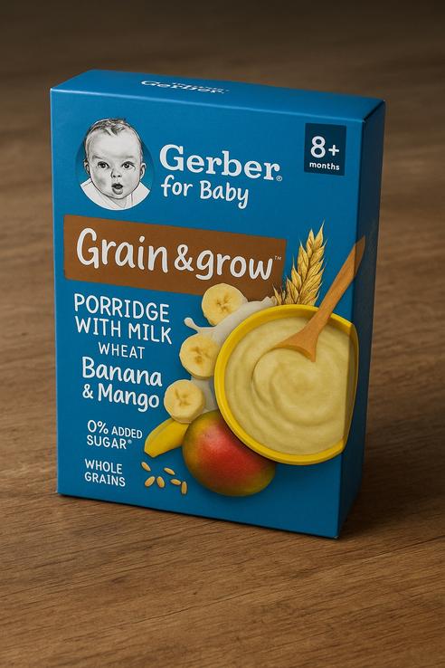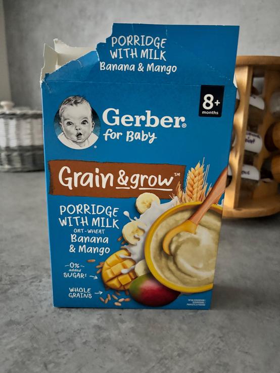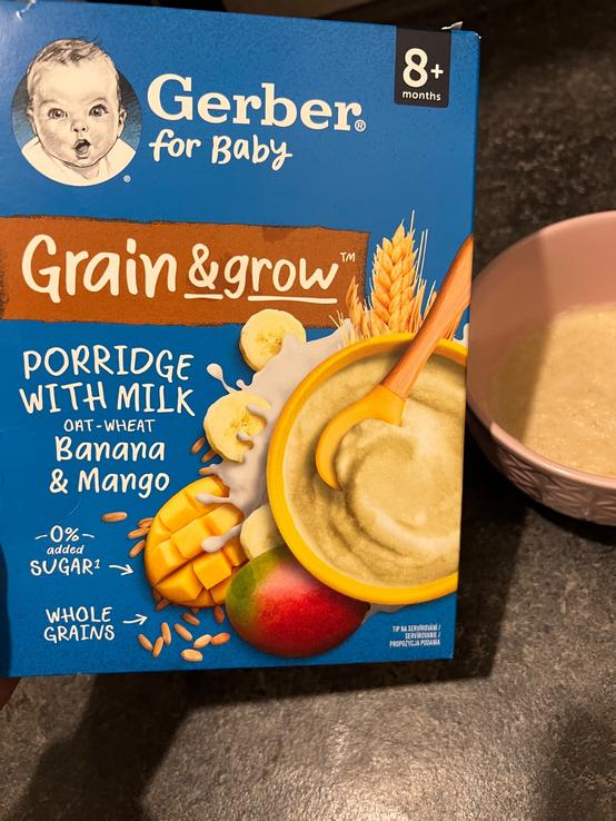 GERBER mliečna kaša banán a mango je lahodný obilno-mliečny príkrm pre vaše bábätko. Kaša je vyrobená zo starostlivo vybraných obilnín, pšenice a ovsa. Okrem toho pri výrobe nepridali cukor¹ ani arómy. Kaša je určená pre dojčatá od ukončeného 8. mesiaca.