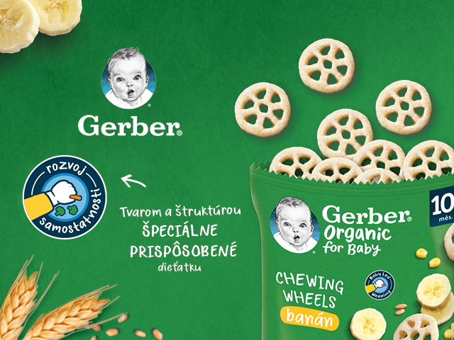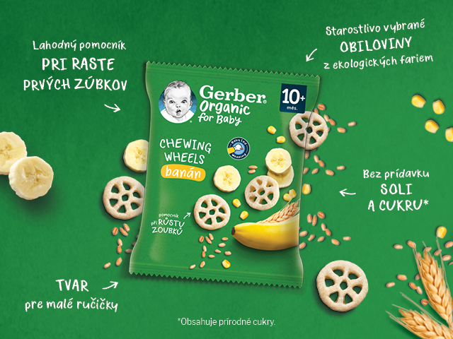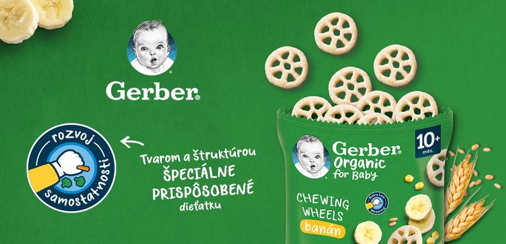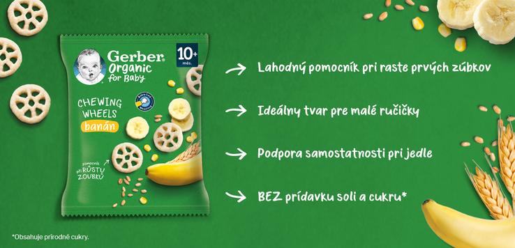 GERBER Organic chewing wheels chrumkavé kolieska s banánom, 28 g