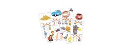 Sú ľahko odlepiteľné a znovu nalepiteľné na iné pozadie. Sada obsahuje nálepky a 5 scenérií, ale my ich s Hančou oveľa radšej lepíme po oknách. Nezanechávaju fľaky:)