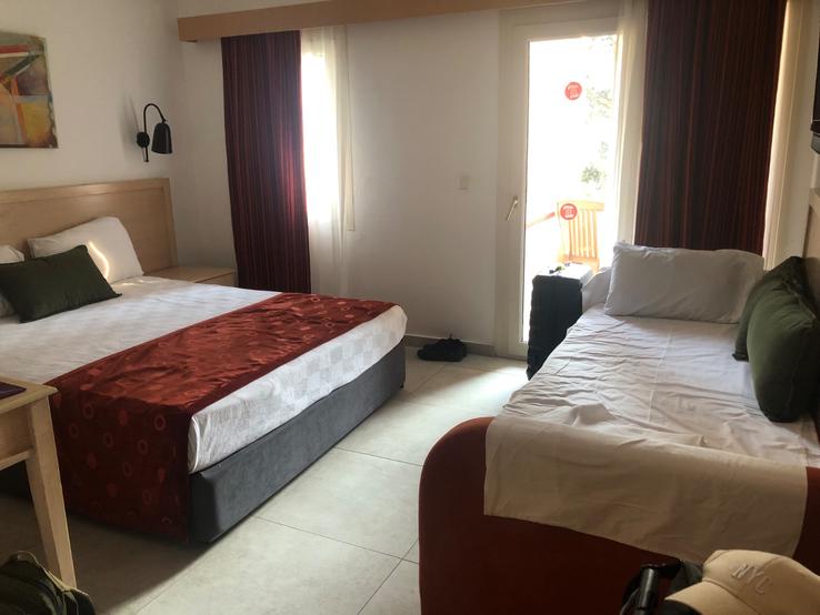 Dostali sme izbu vedľa zásobovacieho vstupu, takže sme každý de boli zobudení okolo 7:45 prípadne o 4:00 keď prichádzali smetiari. Bazén studený, žiaden program večer. Skapal tam pes. V meste tiež úplne hlucho. Hotel pre dôchodcov….