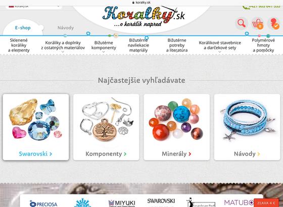 Najväčší e-shop na korálky a komponenty pre tvorbu handmade, koralky.sk, ponúka komponenty a korálky na výrobu hand made výrobkov.