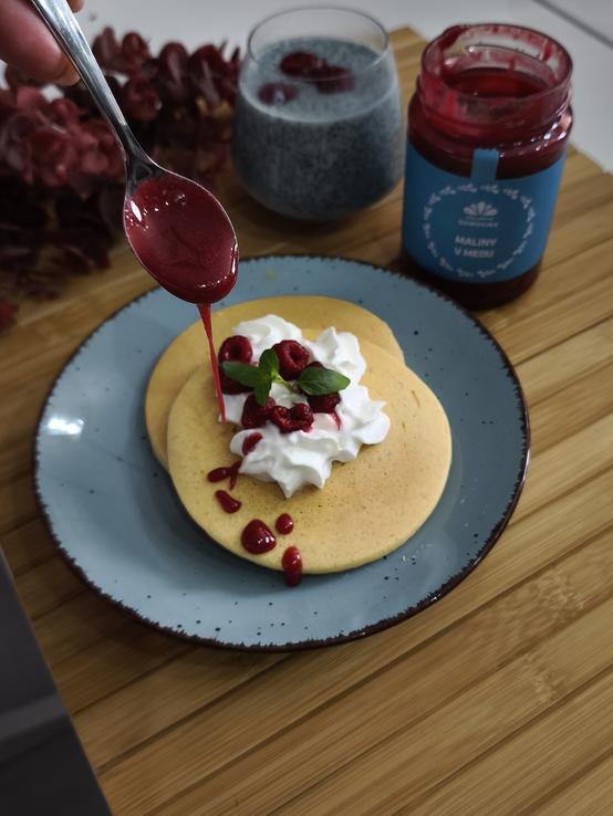 Dcérka prišla zo školy a po dobrom obede mala chuť na dezert. Tak som jej urobila bezlepkové lievance s rastlinným mliekom. A napadlo mi, že by som namiesto tradičného džemu mohla vyskúšať tento skvelý med s malinami.