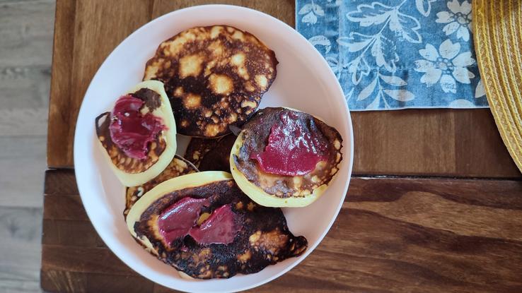 Vďaka pastovej konzistencii sa medík osvedčil v palacinkách (fotky robila najmladšia dcéra) a na vianočke (tú som ani nestihla odfotiť, tak rýchlo sa rozchytala). Skúsila som aj do ovocného šalátu, ale tam sa tá chuť stratila. Takže odporúčam skôr na natieranie čohokoľvek, čo máte radi.