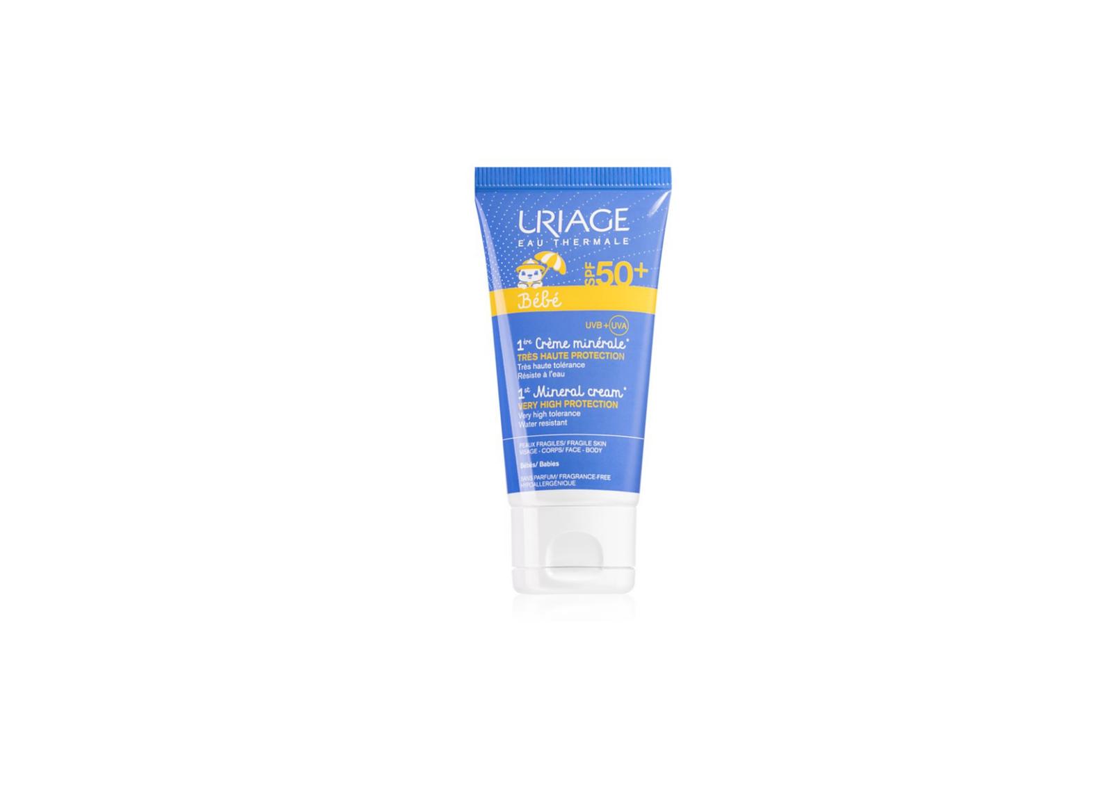 Minerálny krém na opaľovanie Uriage Bébé 1st Mineral Cream s SPF 50+ slúži ako ochrana pred slnečným žiarením pre detskú pokožku.