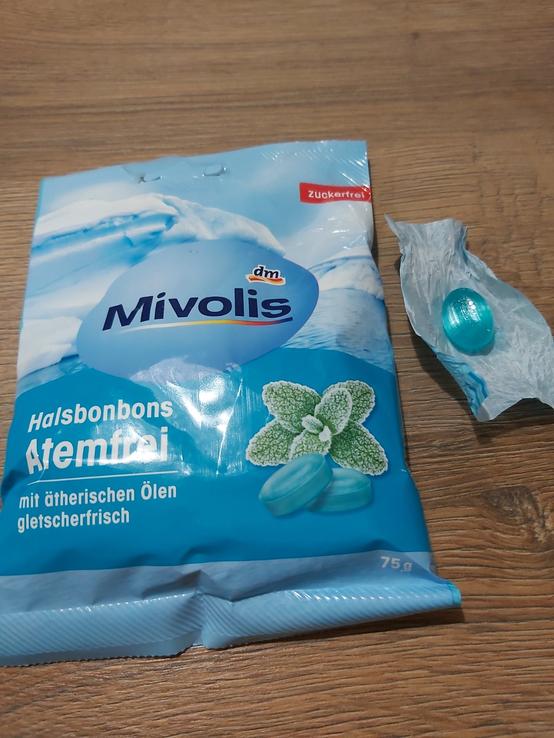 Mivolis Bonbóny na uvoľnenie dýchania, 75 g s mätou piepornou a mentolom chutia osviežujúco a postarajú sa o dlhotrvajúci svieži dych. Pomôžu navodiť pocit voľného dýchania.
